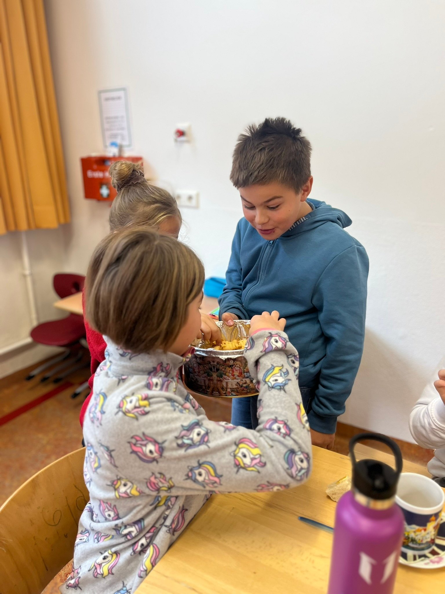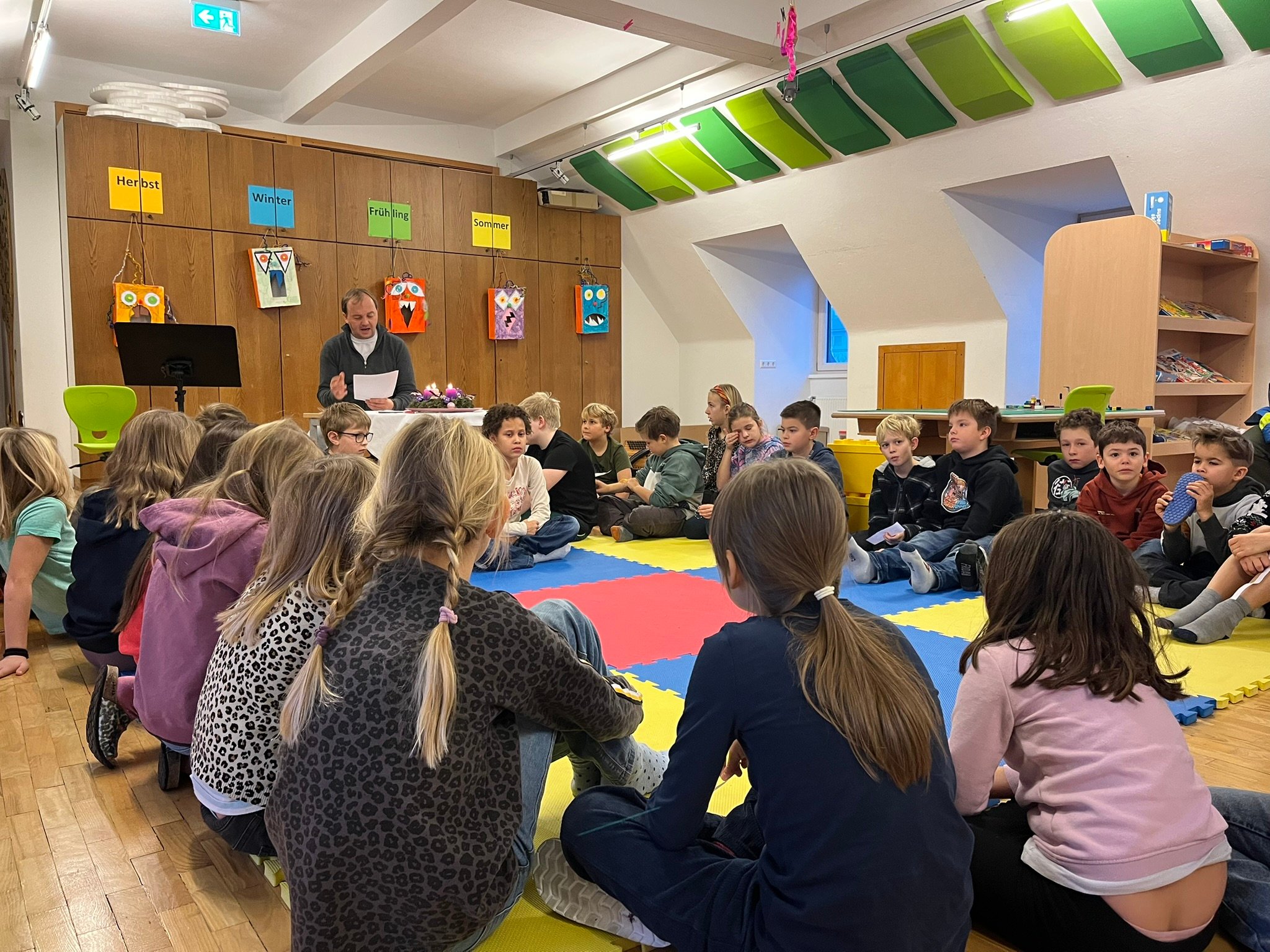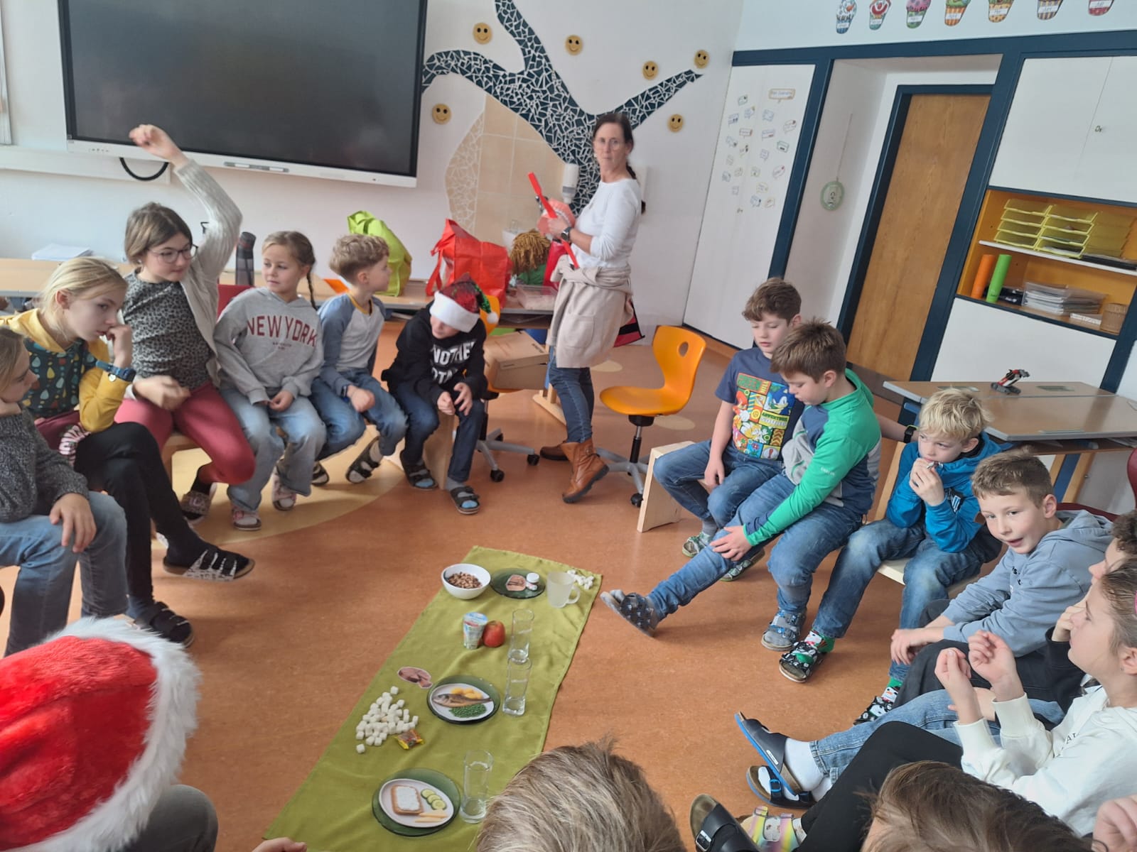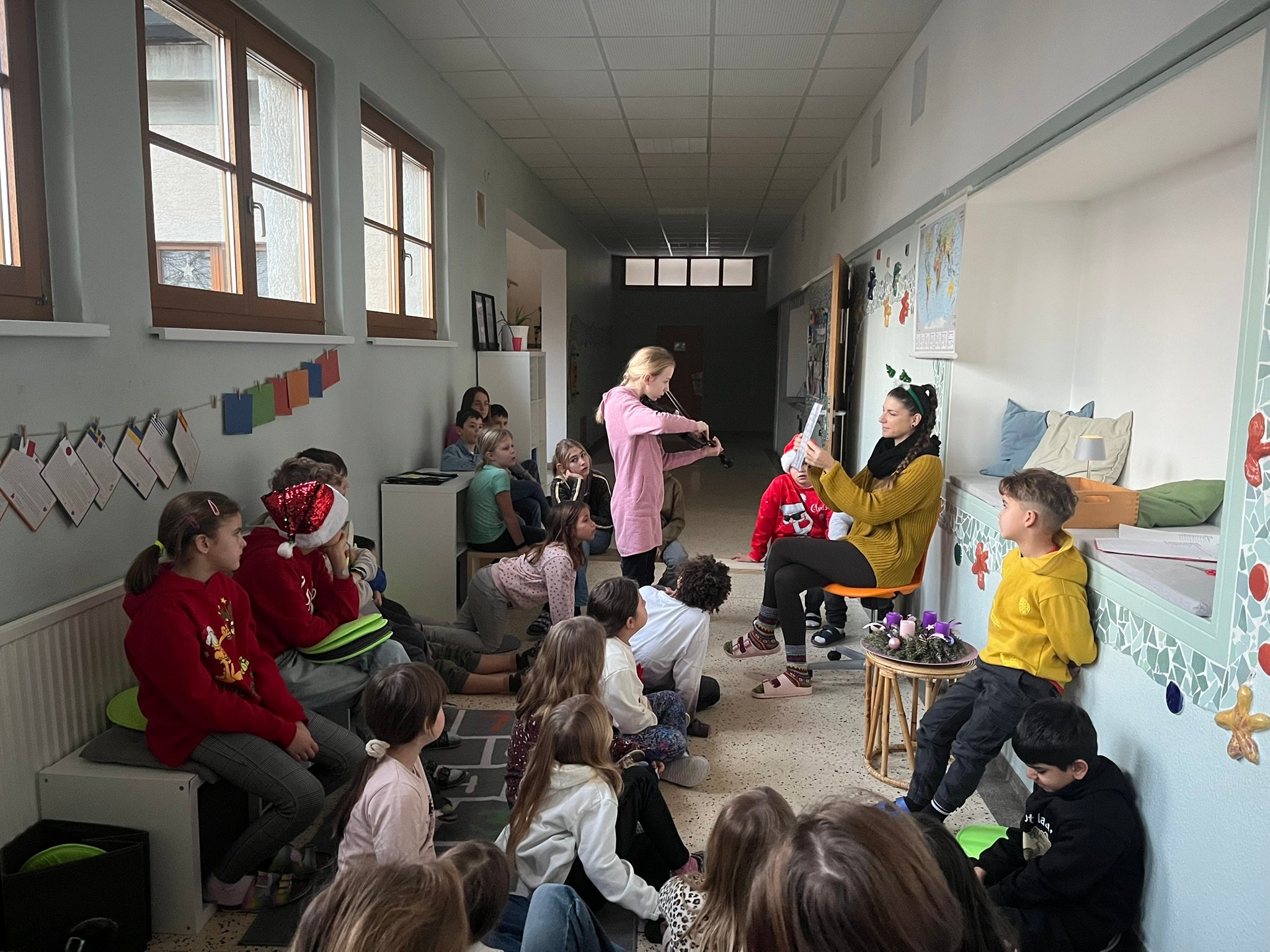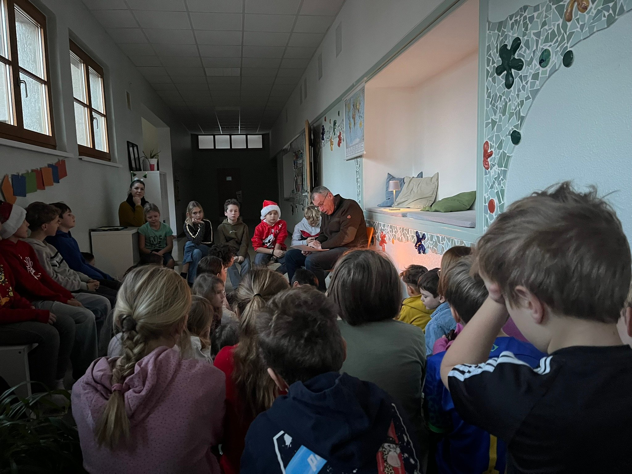Am Tag vor den Weihnachtsferien fand ein lustiger und stimmungsvoller Weihnachtsvormittag statt. Ein Papa kam extra in die Schule und las den Kindern Geschichten vor – vielen Dank Hannes!