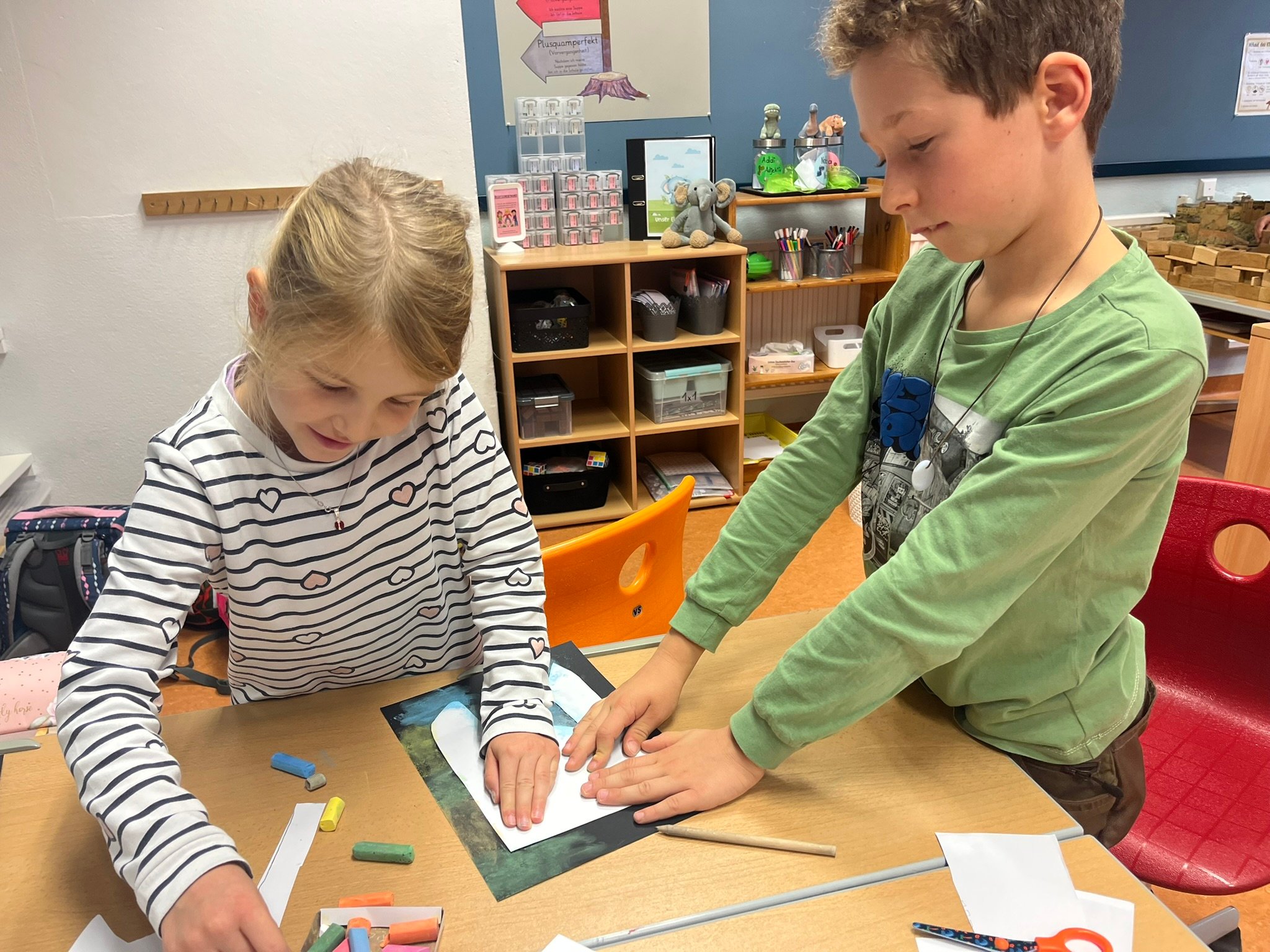 Heute, dem 24. September, fand in den ersten drei Stunden ein besonderer Atelierstag statt. Die Kinder der 1. bis 4. Schulstufe arbeiteten bunt durchmischt in verschiedenen Ateliers zum Thema
