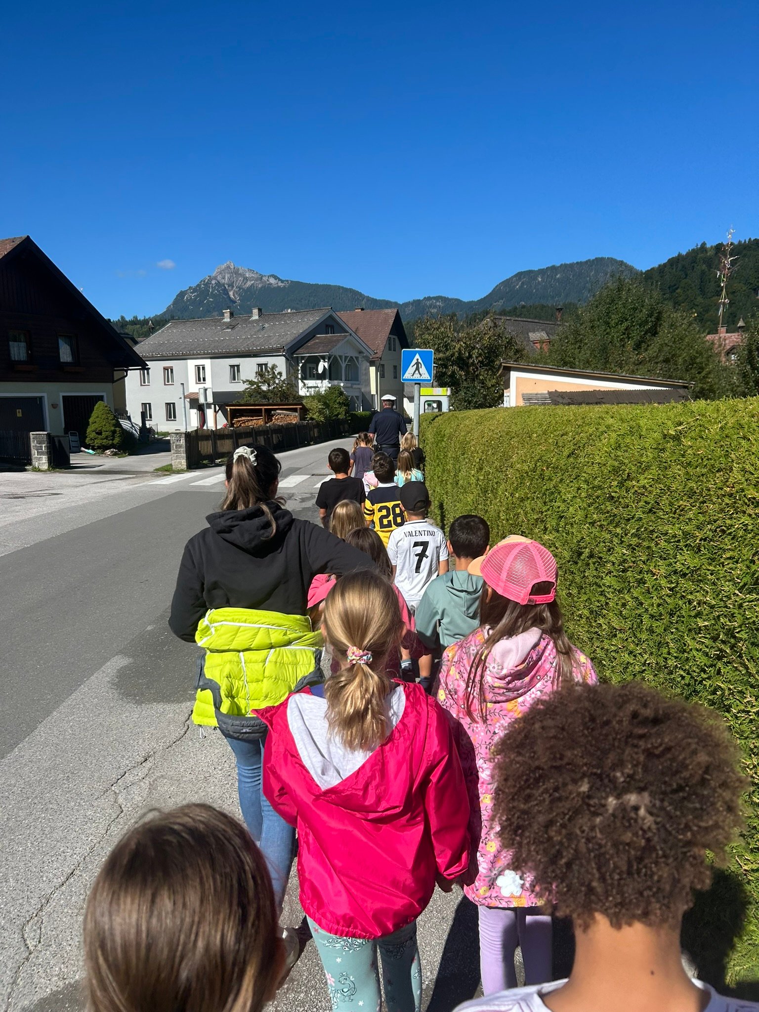 Am Freitag der ersten Schulwoche machten sich die 35 Kinder unserer Volksschule gemeinsam mit den LehrerInnen auf den Weg zu einem ganz besonderen Wandertag. Entlang der Enns spazierten wir nach