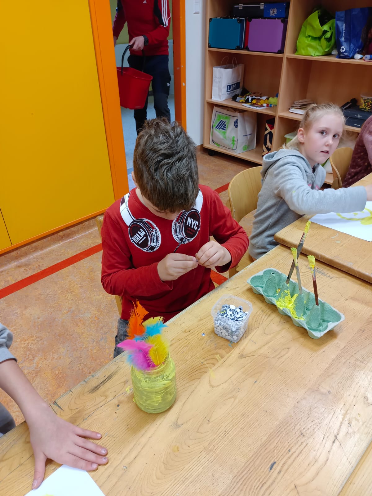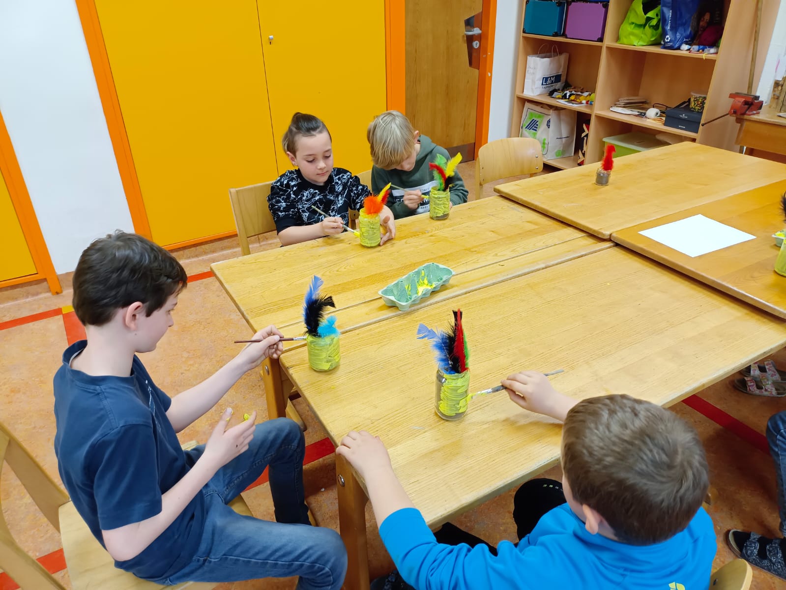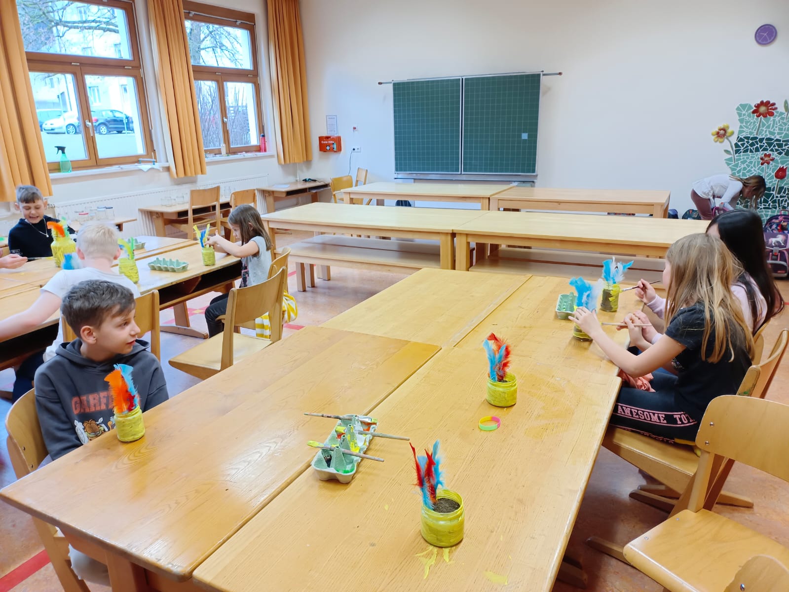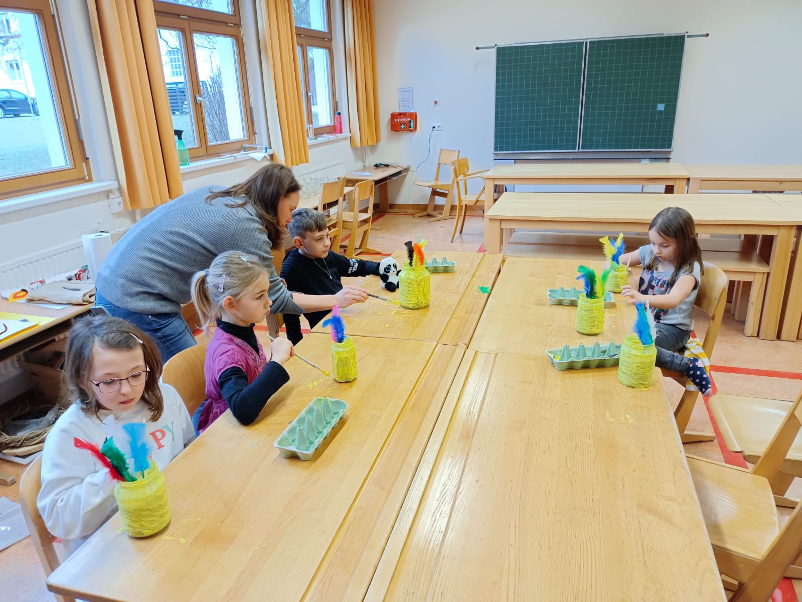 Zur Vorbereitung auf Ostern durften die Kinder am 27. März in einem Werkstattbetrieb arbeiten. Dabei wechselten sie in jahrgangsübergreifenden Gruppen zwischen vier Stationen. Dabei wurde musiziert, gemalt, gebastelt, angesät und eine Geschichte gehört. Der Vormittag bot eine gelungene Abwechslung zum alltäglichen Unterricht und machte den Kindern viel Freude.