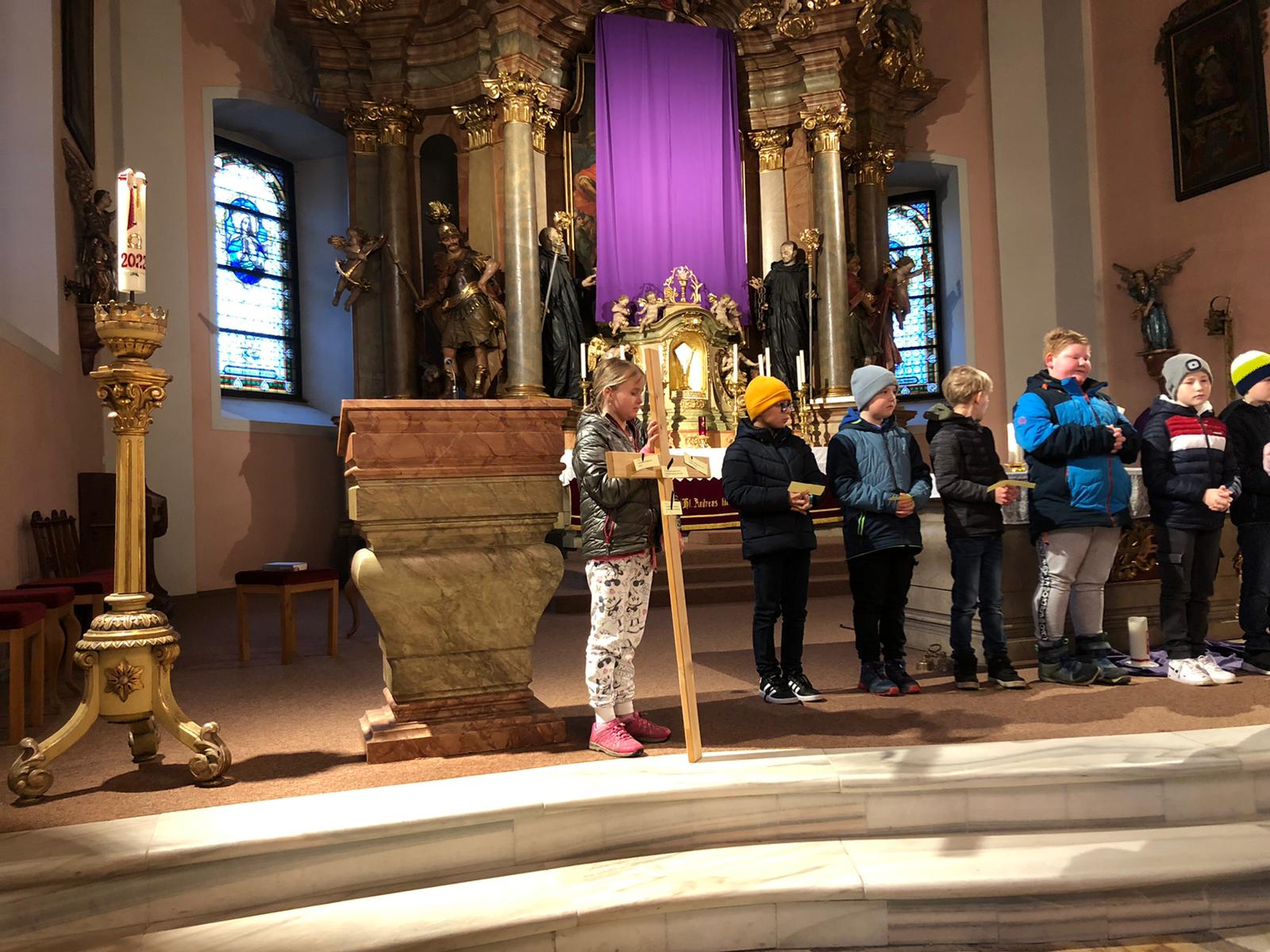 19. März 2023 unsere zehn SchülerInnen der 2. Klasse, beim Gottesdienst vorgestellt wurden.