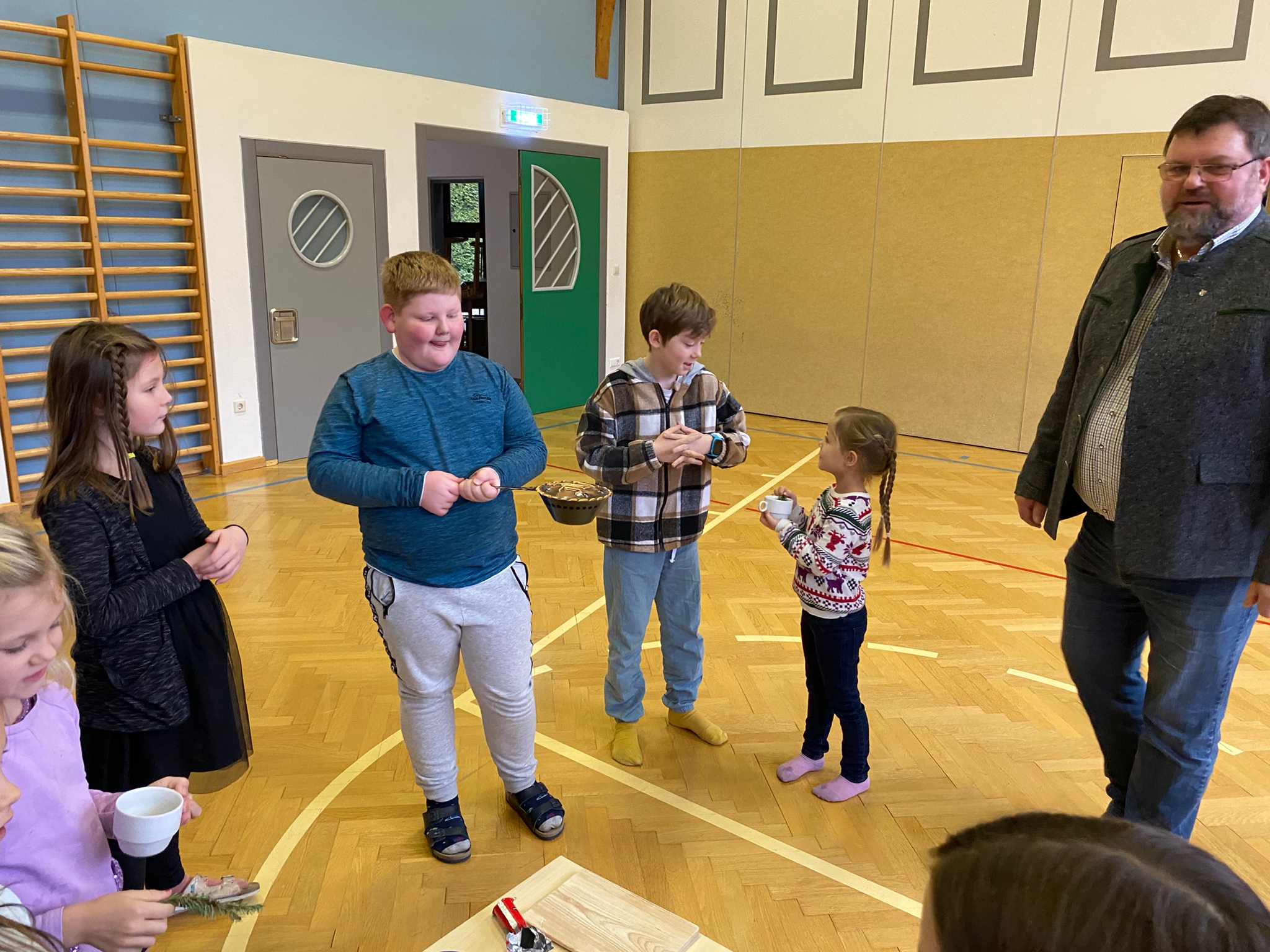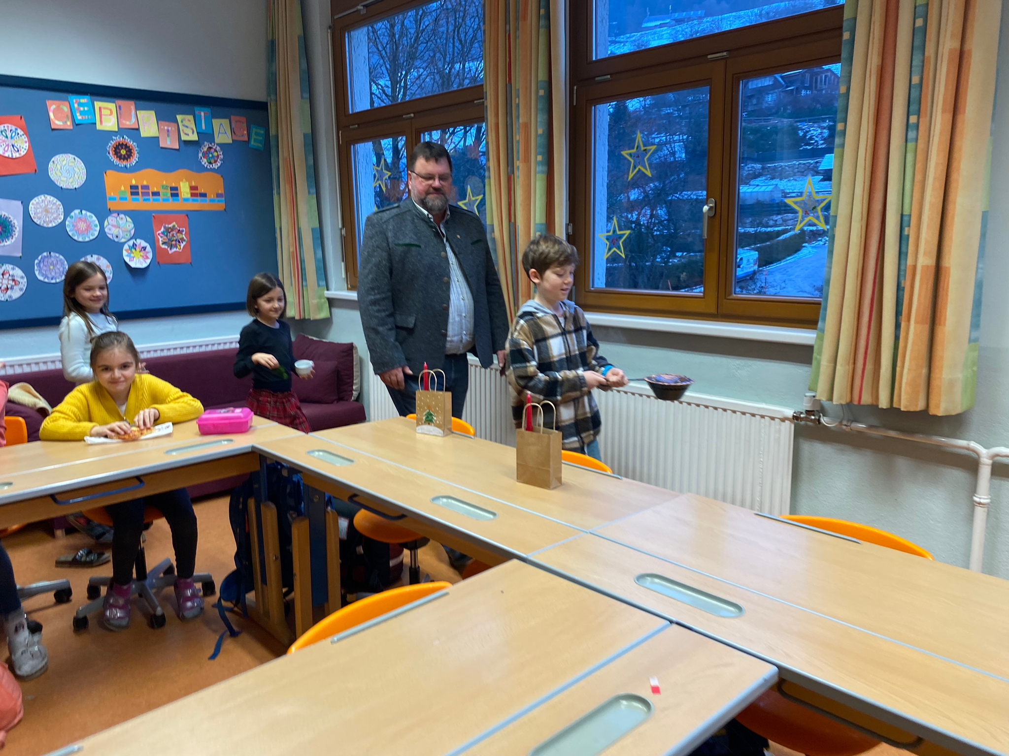 Am 23. Dezember besuchte uns der Bürgermeister in der Schule. Herr Zach brachte den SchülerInnen den Brauch des "Rauchens" näher. Nach einem gemeinsamen "Vater unser" ging er mit einigen Kindern mit der Rauchpfanne und Weihwasser durch das Schulhaus. Vielen Dank für dein Kommen!