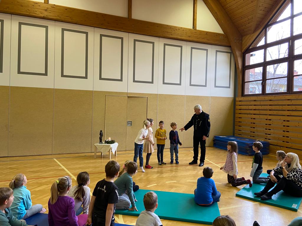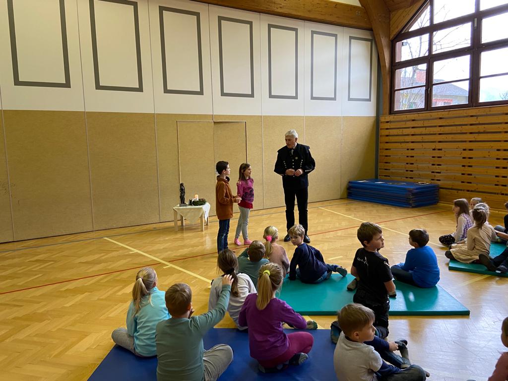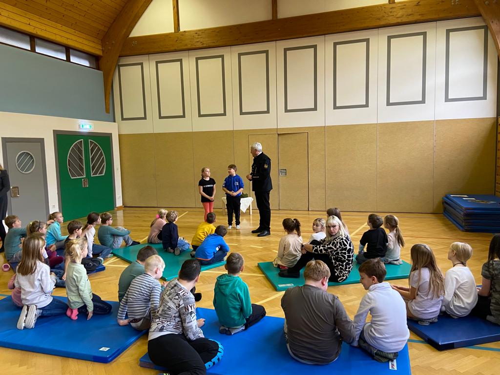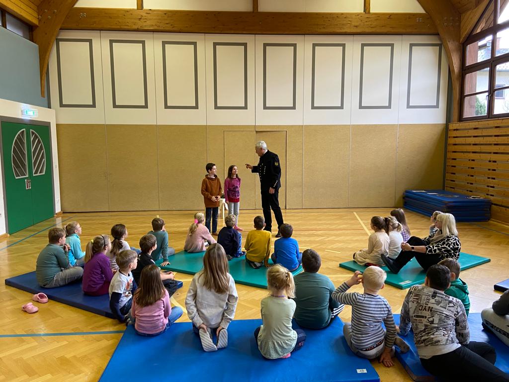 Ende Oktober bekamen wir in der 1. Klasse Besuch von einer Polizistin und einem Polizisten. Die beiden erklärten den Schülerinnen und Schülern, worauf es bei der Sicherheit am Schulweg ankommt und zeigten ihnen, wie man einen Zebrastreifen richtig überquert. Vielen Dank dafür!