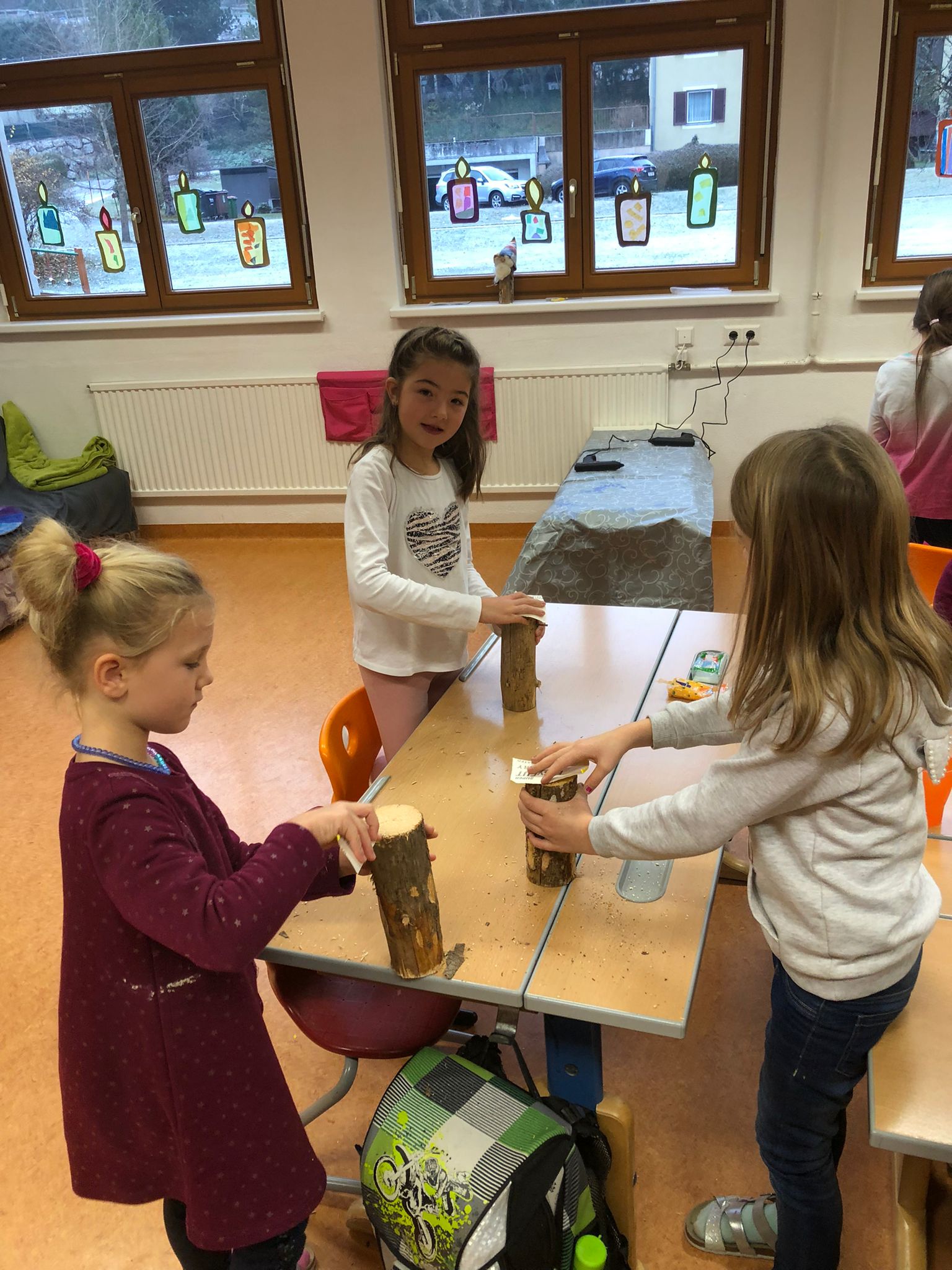 Passend zum 1. Dezember gestalteten wir am Donnerstag den Schultag als Weihnachtswerkstatt. Die Kinder wurden in klassenübergreifende Gruppen eingeteilt und konnten an vier verschiedenen Stationen arbeiten. Es gab eine Tonwerkstatt, eine Kartenwerkstatt, eine Wichtelbastelwerkstatt und eine Klanggeschichtenwerkstatt. Mit viel Begeisterung und Motivation arbeiteten die Kinder fleißig an den unterschiedlichen Stücken und so entstanden auch schon die Weihnachtsgeschenke, die sie dann an Weihnachten mit Freude weiterschenken können.