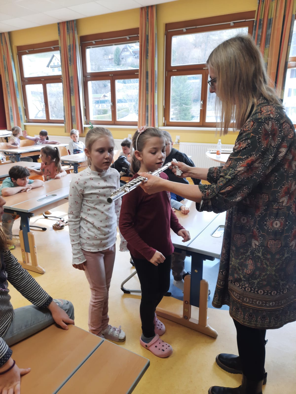 Die erste und zweite Schulstufe der VS Öblarn und Niederöblarn haben im Sommersemester die Möglichkeit viele verschiedene Instrumente kennenzulernen. Regelmäßig bekommen sie dafür Besuch von Musikerinnen und Musikern des Musikvereins Öblarn. Die Kinder lernen dabei nicht nur verschiedene Eigenschaften und Teile der Instrumente kennen, sondern erfahren auch einiges über Instrumentengruppen, Musizieren und dürfen probieren wie es ist, selbst ein Instrument zu spielen. Zusätzlich hat auch jedes Kind vom Musikverein eine Zeitschrift bekommen, in welcher spannende Rätsel zu den Instrumenten ausgefüllt werden können. So wird durch die engagierten Vereinsmitglieder der Musikunterricht in unseren Schulen bereichert.