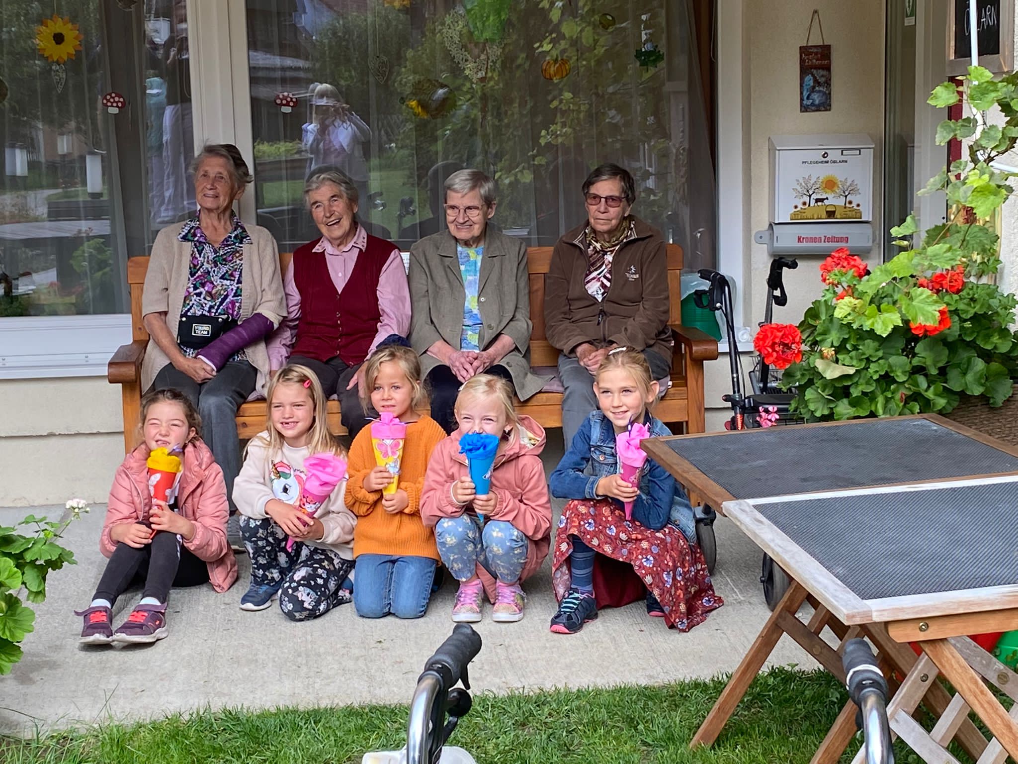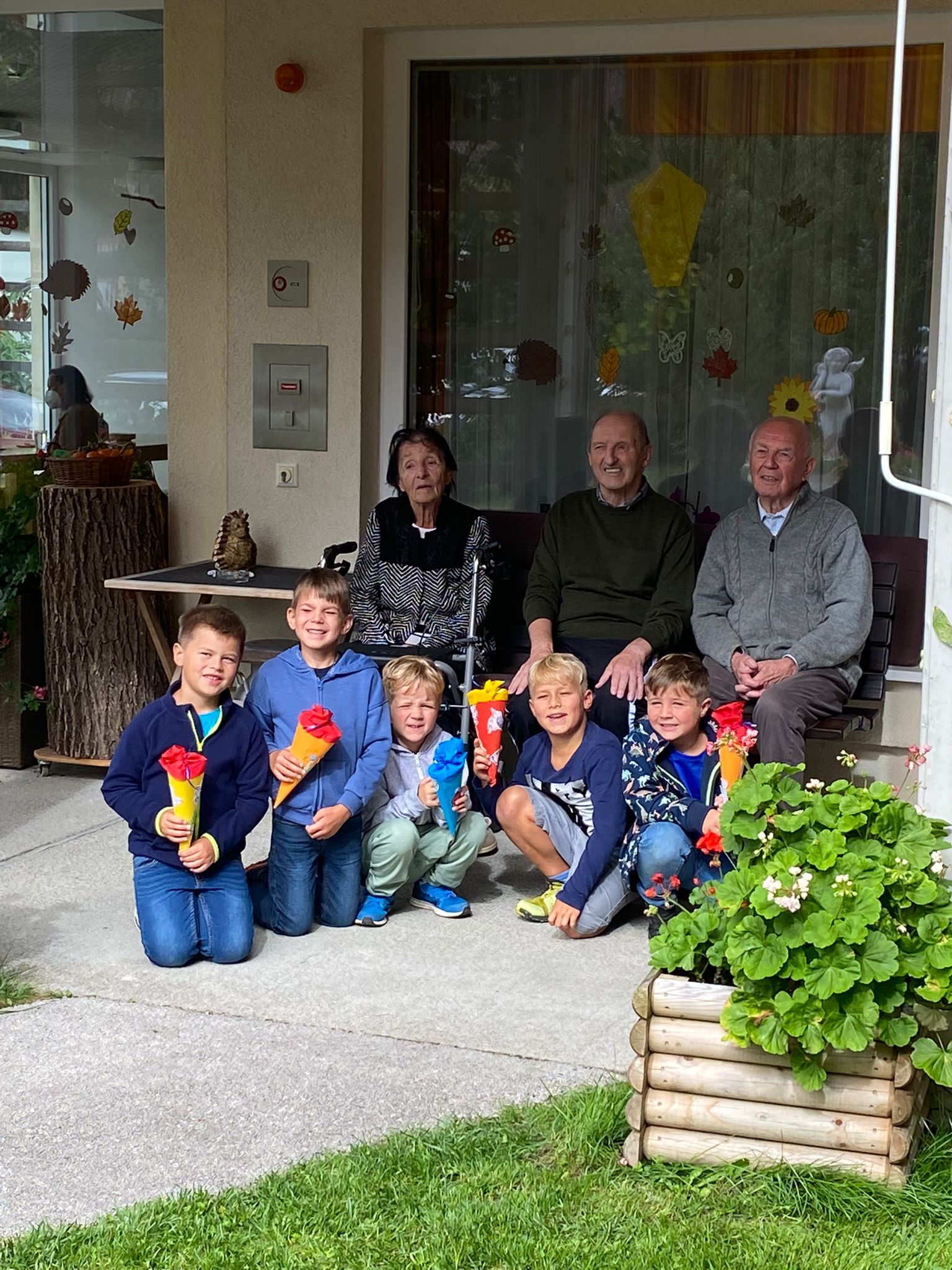 Am 3. Schultag wurden die Kinder der 1. Klasse von den Bewohnern des Pflegeheims mit selbst gebastelten und süß befüllten Schultüten überrascht.