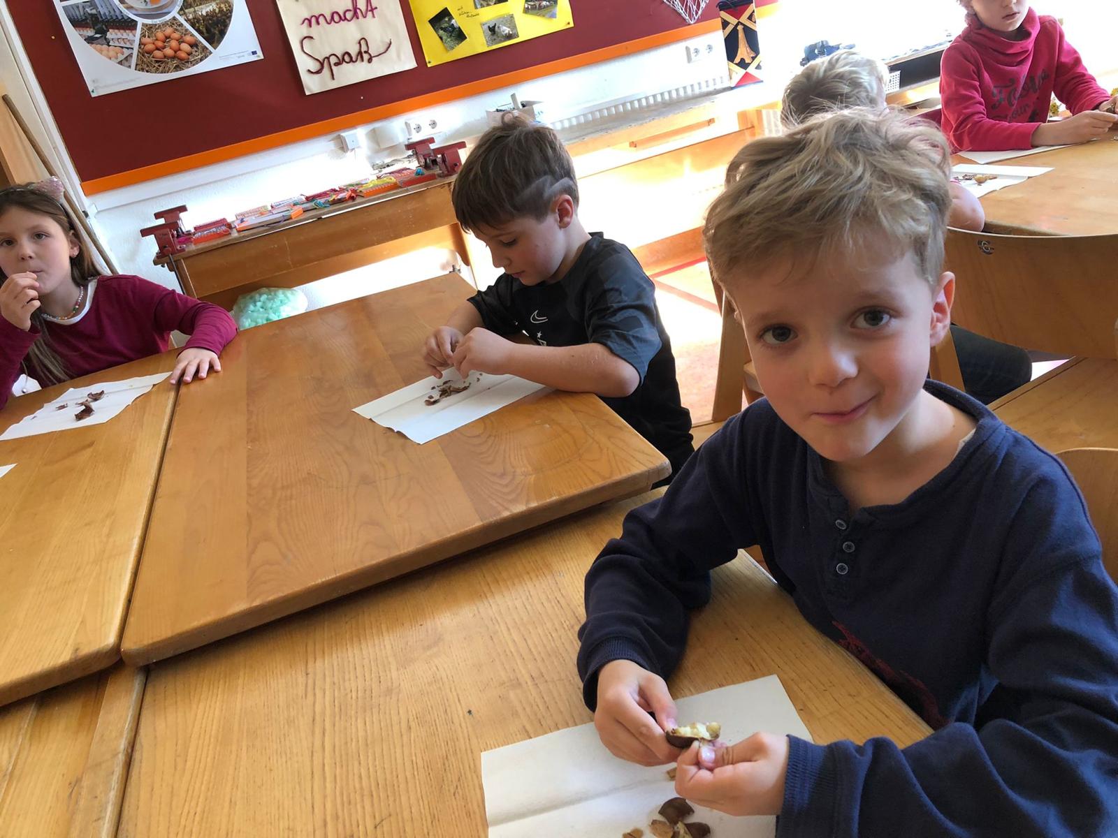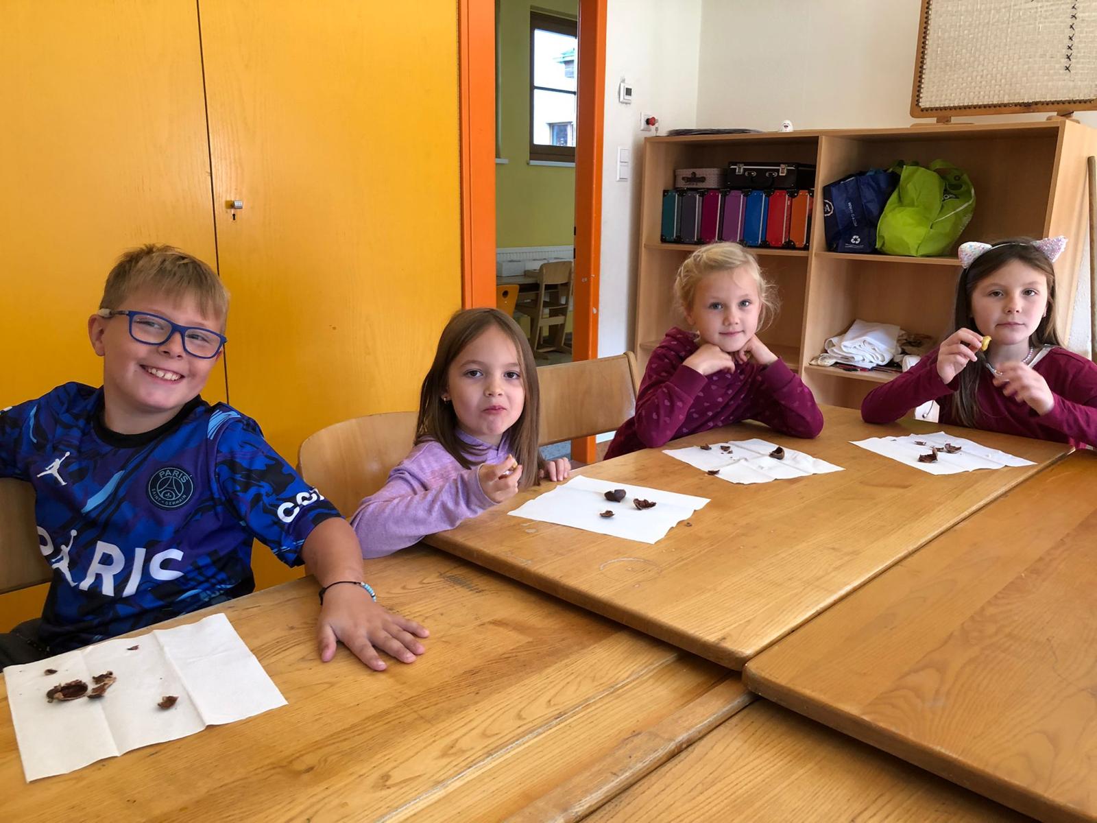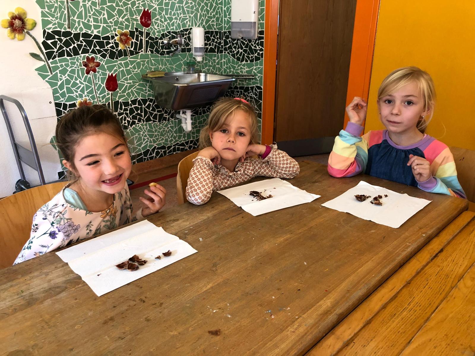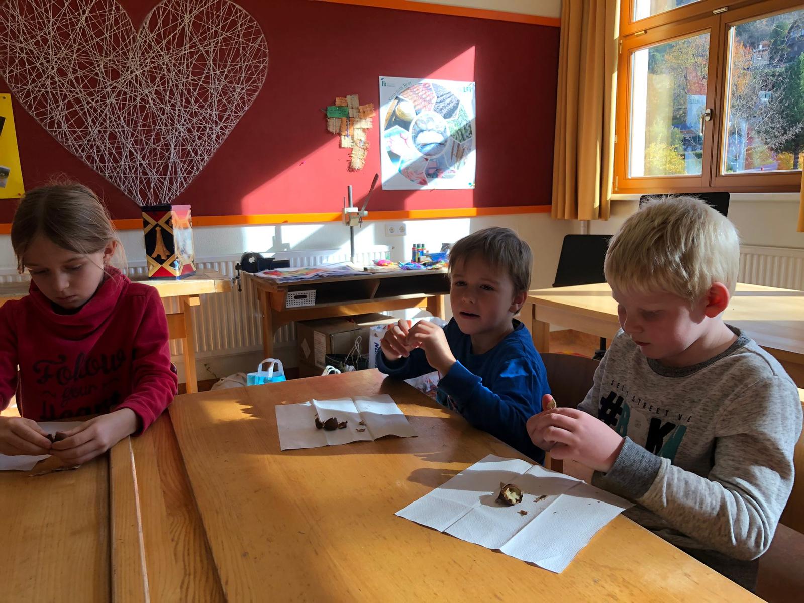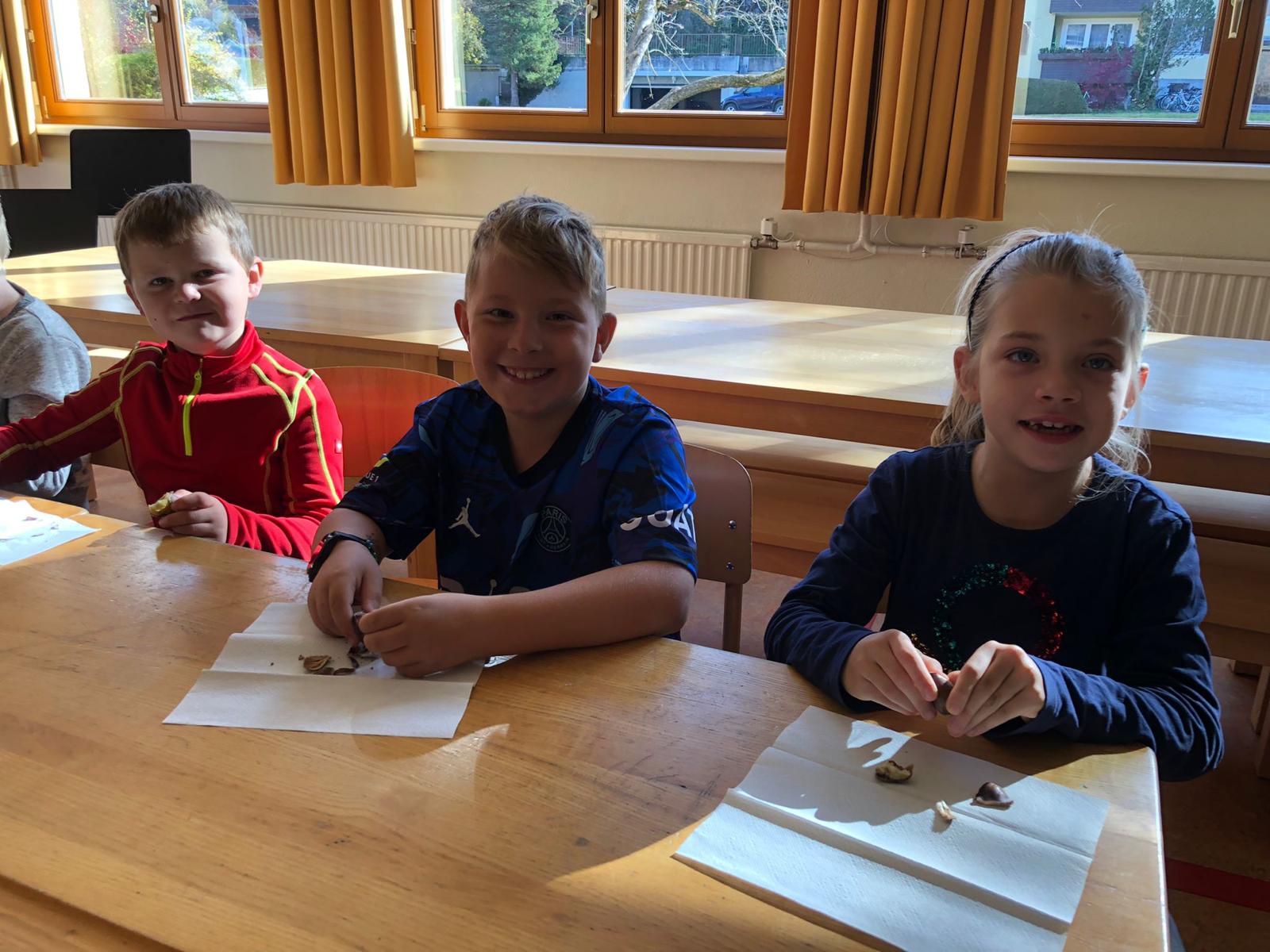 Anlässlich des Erlernens des Buchstabens "Mm", durften sich die Schülerinnen und Schüler schließlich auch gute Maroni schmecken lassen.