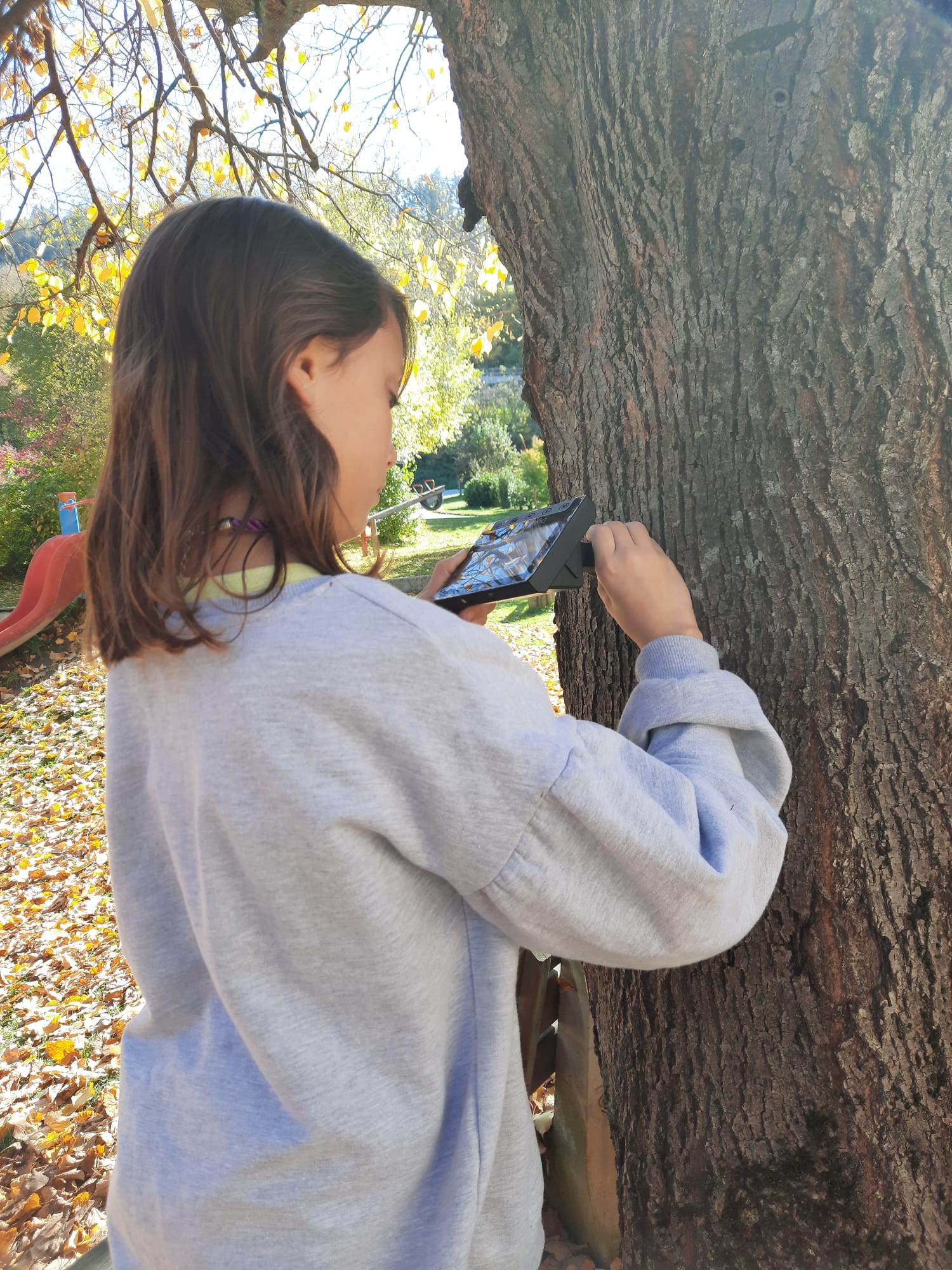 In IBF nahmen wir verschiedene Naturmaterialien unter die „Lupe“ bzw. unter das Mikroskop. Die Kinder erkundeten verschiedene Blätter, Rinden, Gräser etc. im Schulgarten. Die Schüler und Schülerinnen entdeckten sehr interessante Muster auf Blättern, auf Baumrinden, auf Gräsern, gemeinsam wurden das Naturmaterial nicht nur nach Farben sondern auch nach „Mustern“ sortiert.