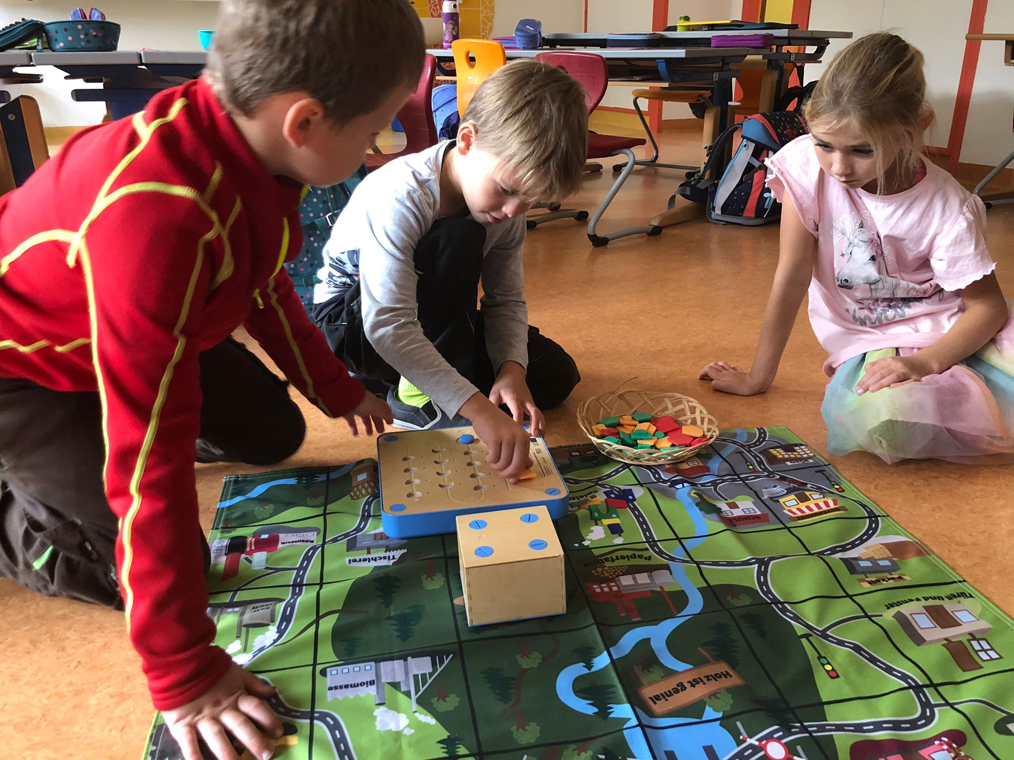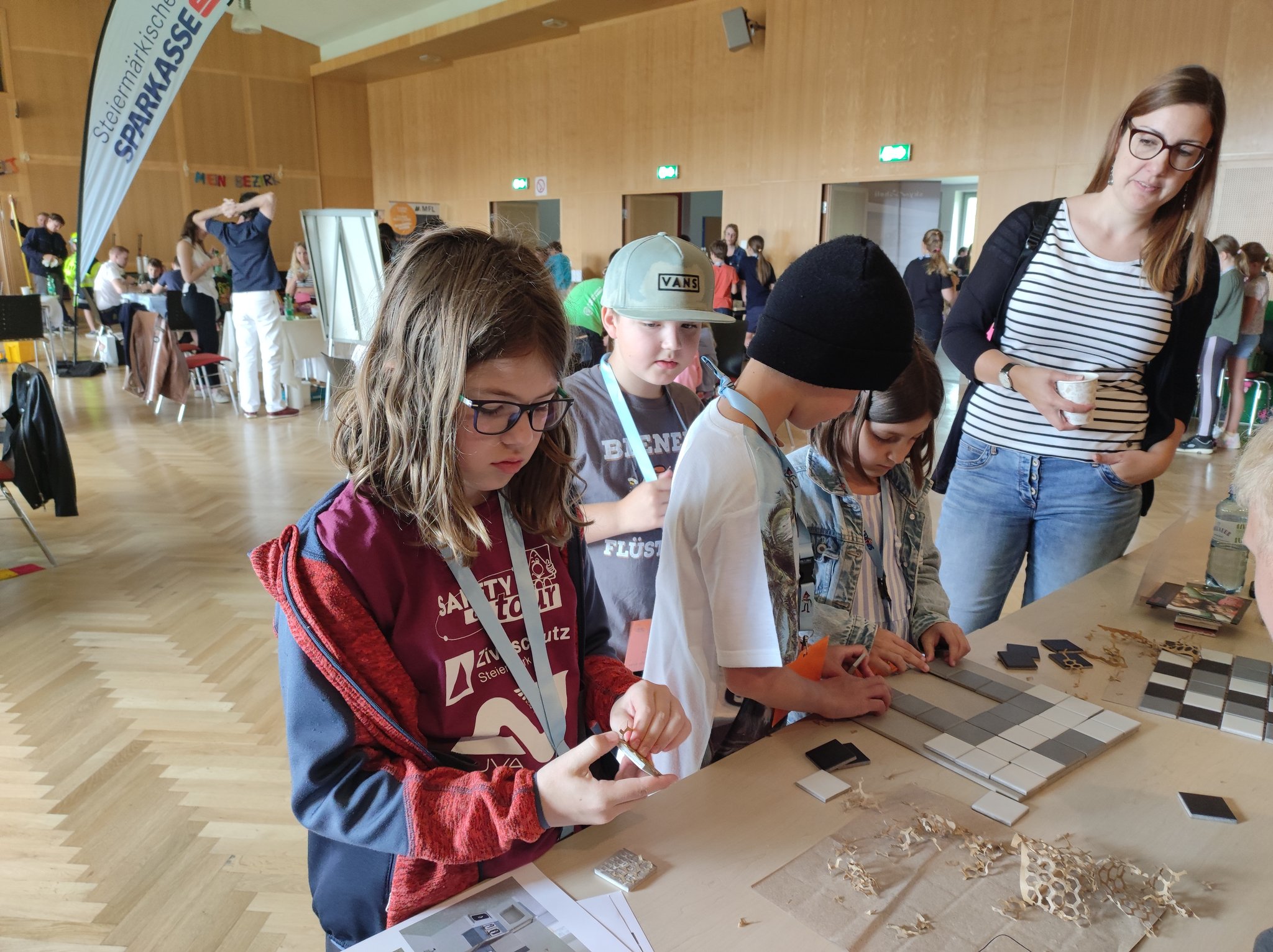 Die Schülerinnen und Schüler durften an diesem abwechslungsreichen Vormittag etwa verschiedenste Gegenstände aus dem Wald unter dem Mikroskop untersuchen, ein Bild nach Kandinsky malen, mathematische Aufgaben zum Wald lösen und verschiedene Hölzer kennenlernen. Das Highlight war wohl das Programmieren des Roboters "Woody", welcher verschiedene Wege zu erledigen hatte, die alle mit dem Thema Holzprodukte im Zusammenhang standen.