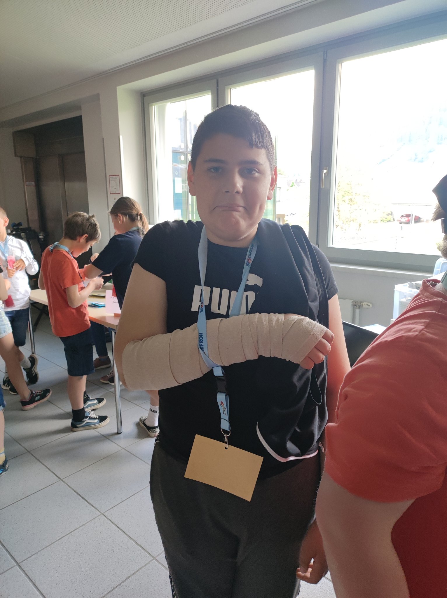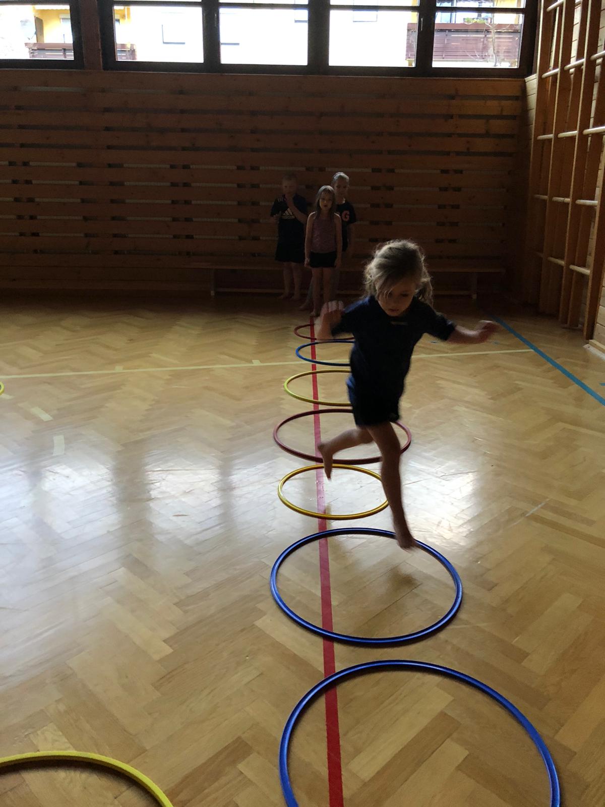 Nachdem die anwesenden Teilnehmer in Gruppen eingeteilt wurden, durften sie gemeinsam mit einem Guide (Schülerinnen und Schüler des Gymnasiums Stainach) die unterschiedlichsten Stationen ausprobieren und ihr Können zeigen. Angefangen von Basketball, Fußball, Volleyball, Weitsprung, Tennis, Tischtennis über Zielwerfen, Geschicklichkeitsübungen bis hin zur Kletterwand war alles dabei. Zwischendurch wurden die Kinder mit einer gesunden Jause versorgt. Trotz des Regens waren die SchülerInnen mit großer Begeisterung dabei. Zum Schluss erhielten alle Teilnehmer noch eine Urkunde.
