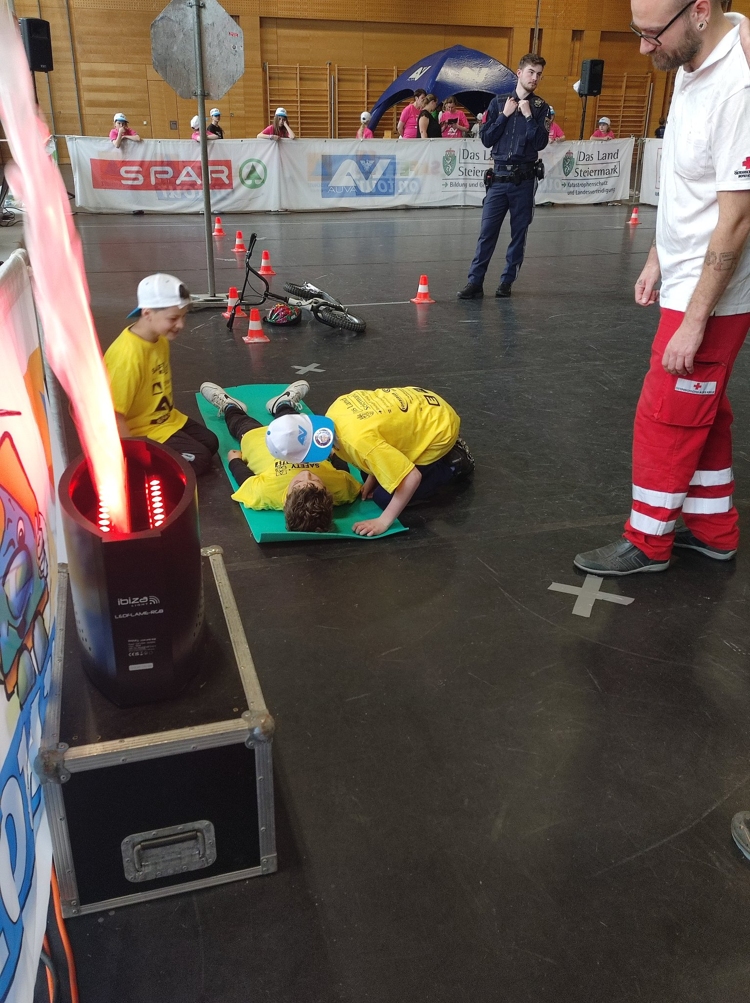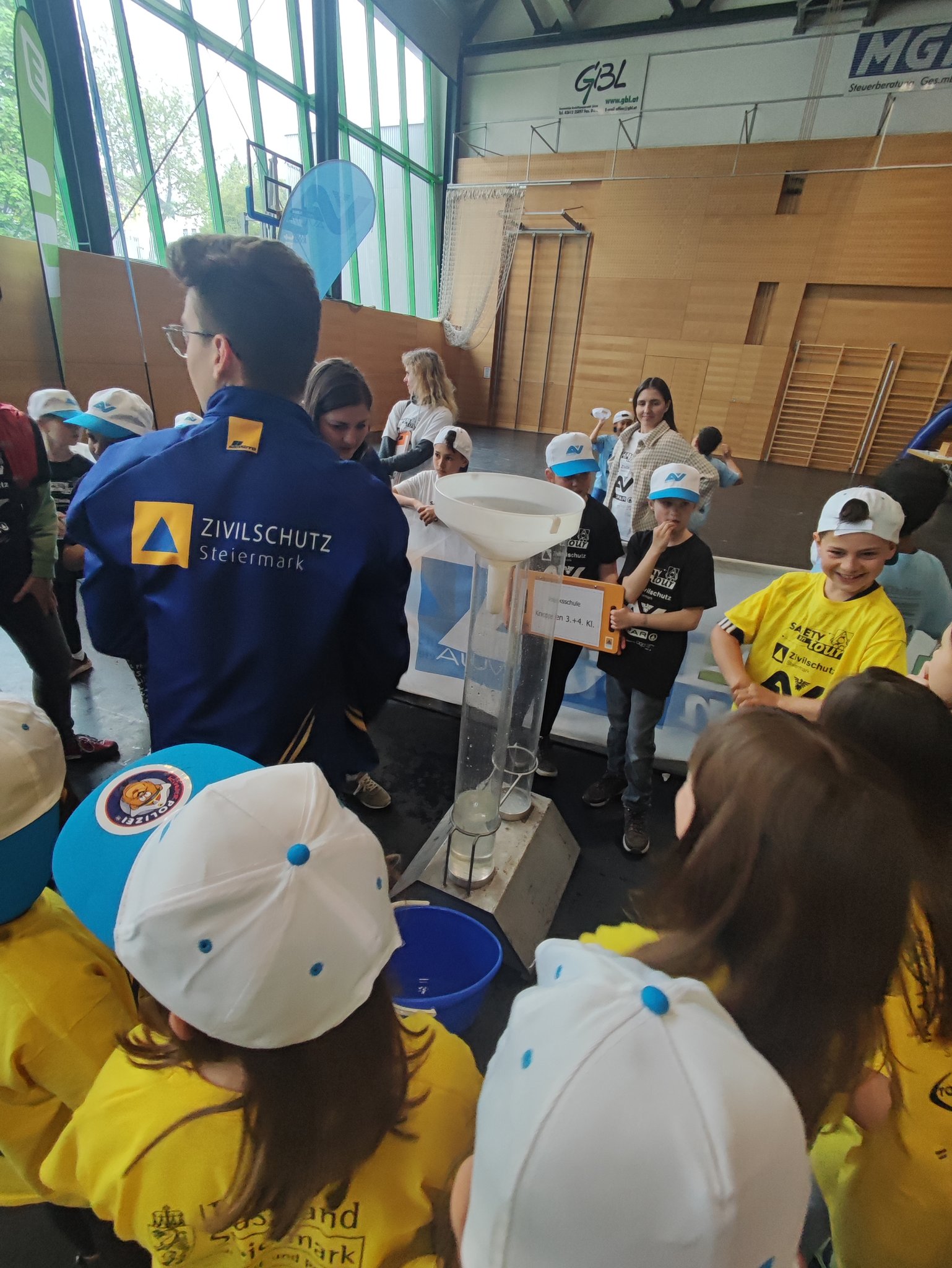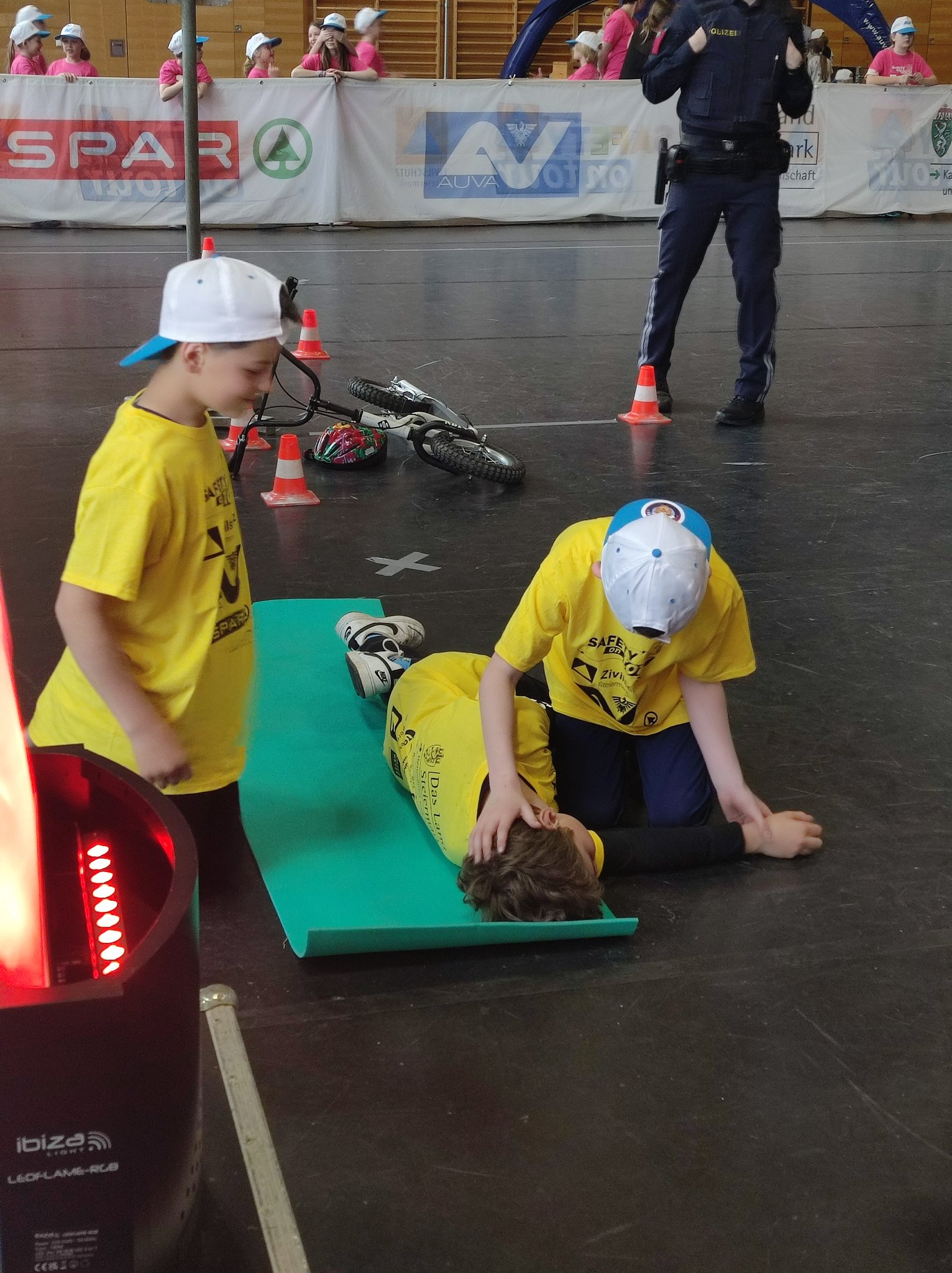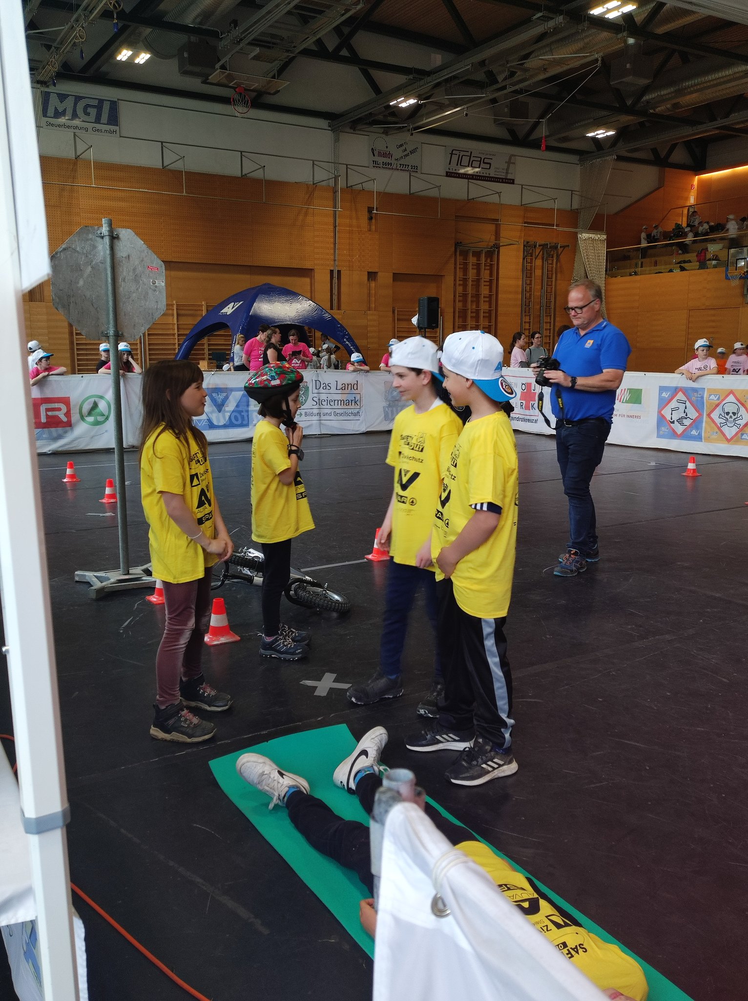 Am Donnerstag, dem 11.05. waren die 3. und 4. Klasse bei der Safety Tour in Liezen. Bei dieser Kindersicherheitsolympiade durften die Kinder bei vier Bewerben ihr Wissen und Talent unter Beweis stellen. Es gab ein Wissensquiz, ein Gefahrenstoff-Würfelpuzzle, einen Erste-Hilfe-Parcours und einen Löschbewerb. Insgesamt nahmen 17 Schulklassen aus diesem Bezirk daran teil. Alle Schülerinnen und Schüler waren mit viel Begeisterung dabei und engagierten sich für ihr Team. Zwischendurch gab es die Möglichkeit an einem Gewinnspiel der AUVA teilzunehmen und einen Blick in die Einsatzfahrzeuge der Rettung und der Polizei zu werfen. So verging dieser aufregende Vormittag wie im Flug.