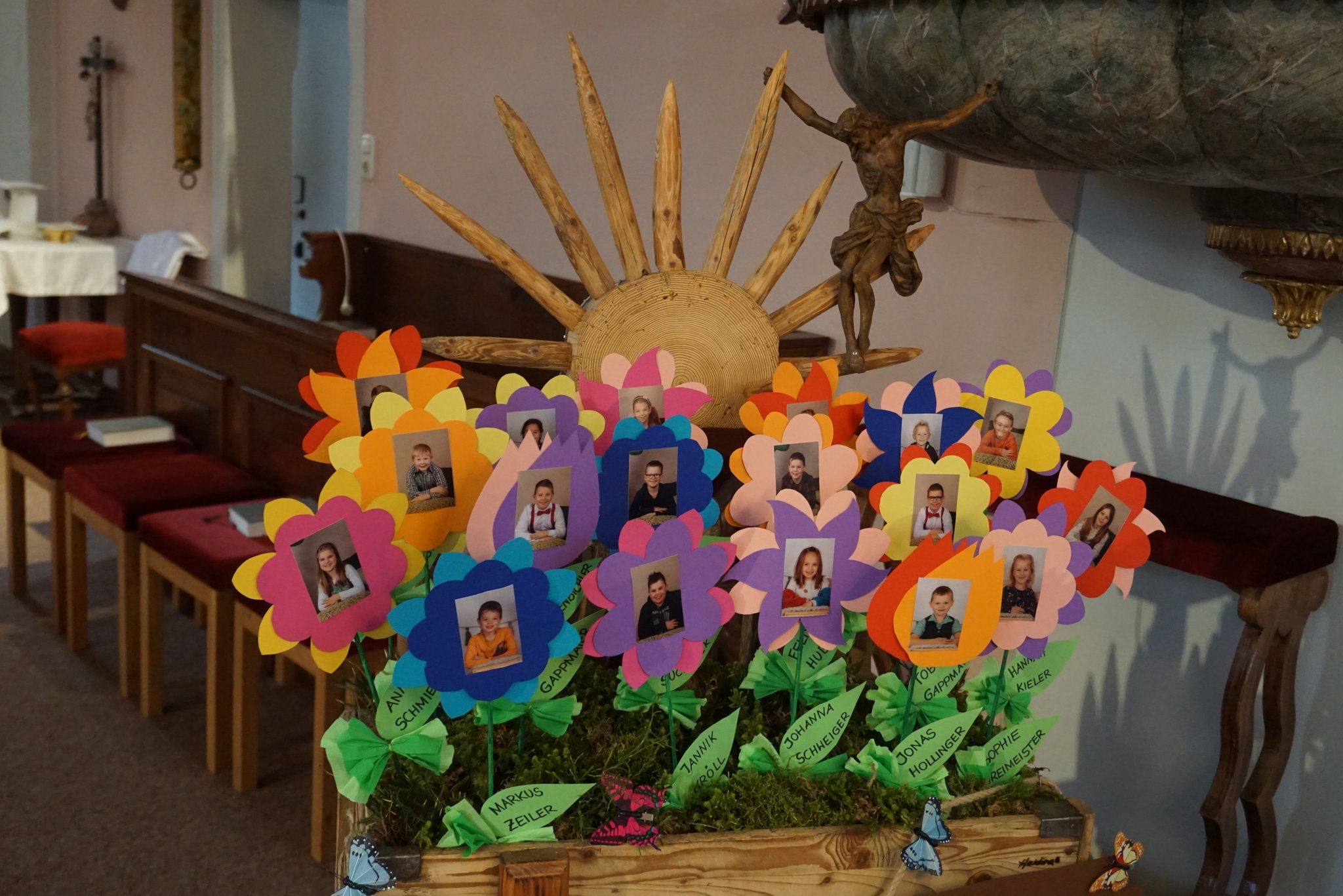 „Mit Jesus kann ich wachsen und aufblühen!“ Jesus selbst will uns alle- ganz besonders die SchülerInnen der 2, Klassen stärken und ermutigen und unser aller Wachsen und Blühen fördern, indem er sich uns Menschen im Heiligen Brot schenkt.