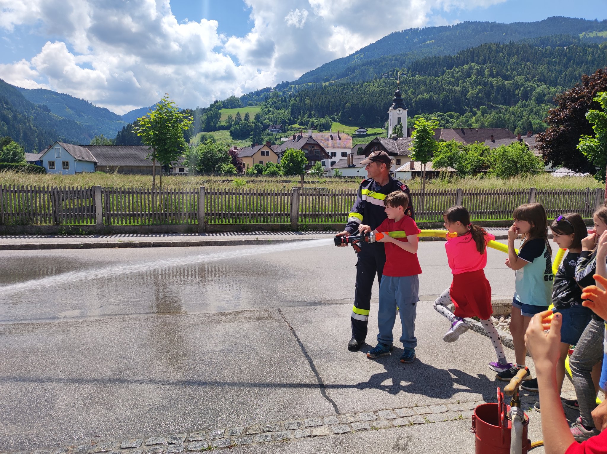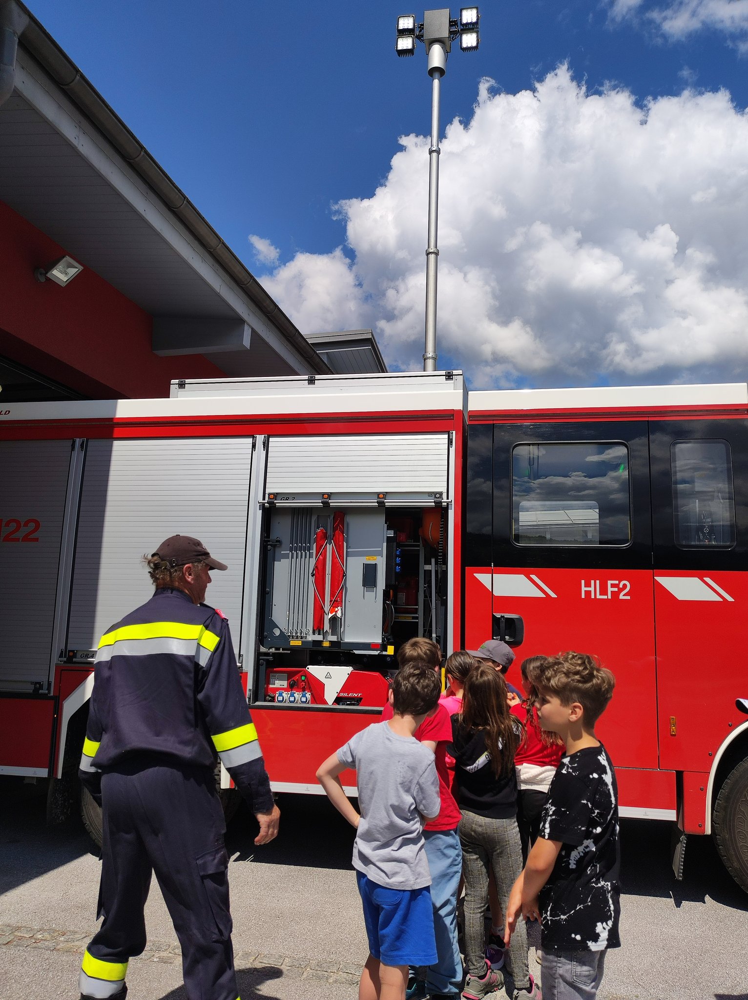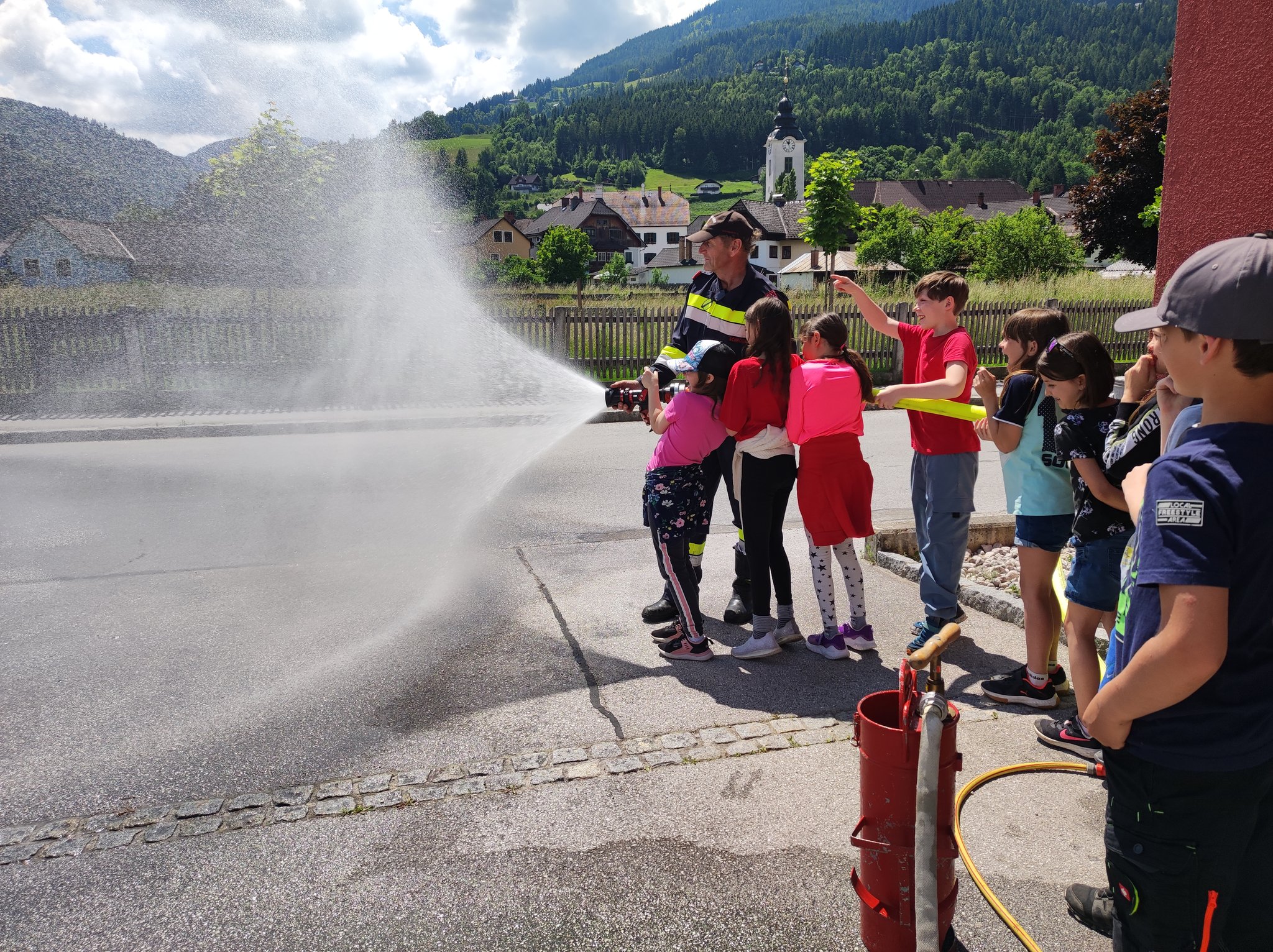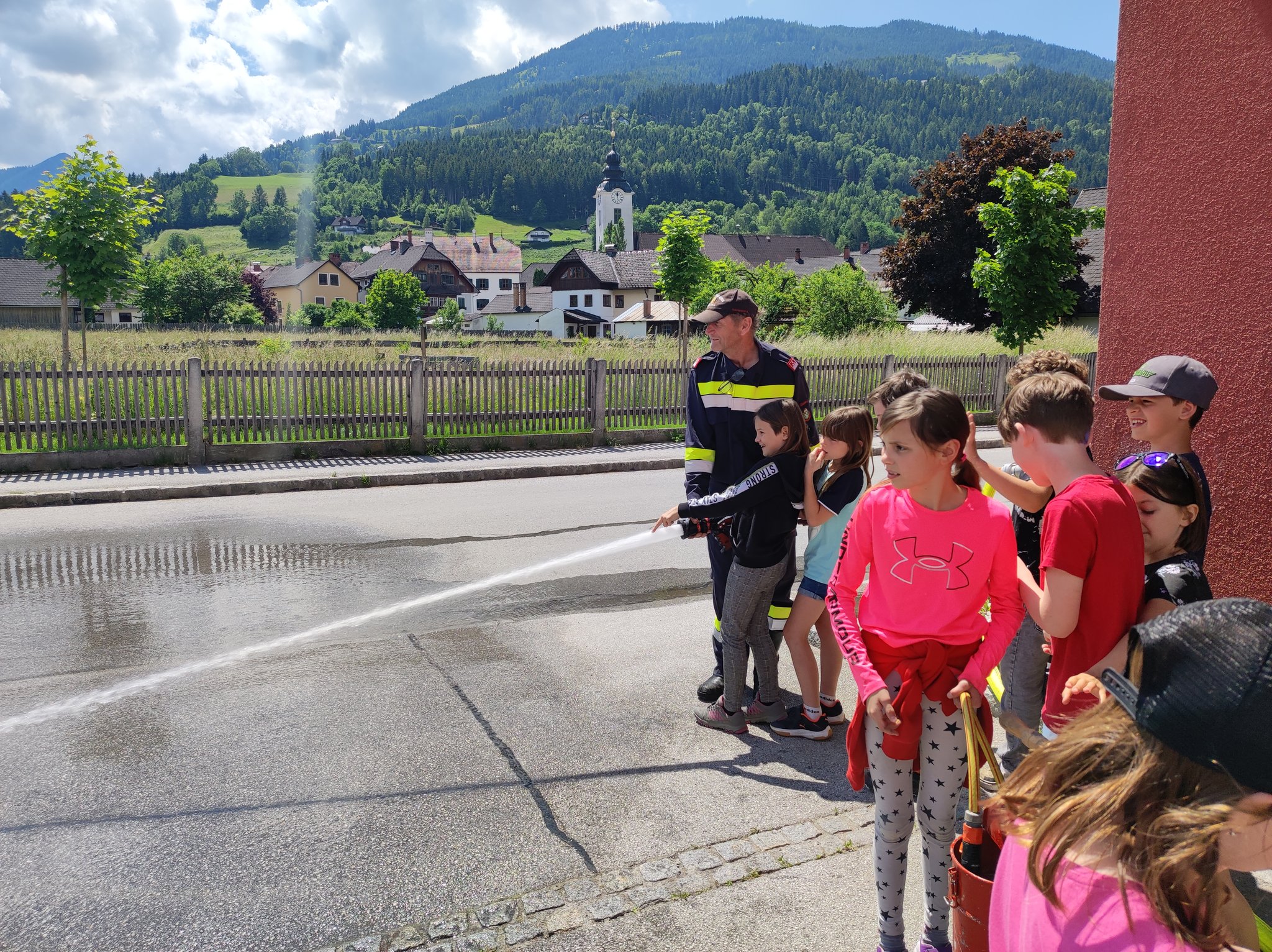 Am Montag, den 12.6., durften die SchülerInnen der 3. Klasse einen Blick in das Rüsthaus der Freiwilligen Feuerwehr Öblarn werfen. Herr Schrögnauer führte die Kinder gekonnt durch das Gebäude und erzählte viel Wissenswertes über die Aufgaben der Feuerwehr. Während die SchülerInnen einen genauen Einblick in das Innere der Einsatzfahrzeuge bekamen, konnten auch Atemschutzmasken, Gurte und das Tragen der Sauerstoffflaschen ausprobiert werden. Zum Schluss des interessanten Lehrausganges durften die Kinder auch noch mit dem Schlauch hantieren. Das machte natürlich sehr viel Spaß! Zu guter Letzt wurden die SchülerInnen auch noch mit dem Einsatzfahrzeug zur Schule gebracht. Herzlichen Dank dafür!