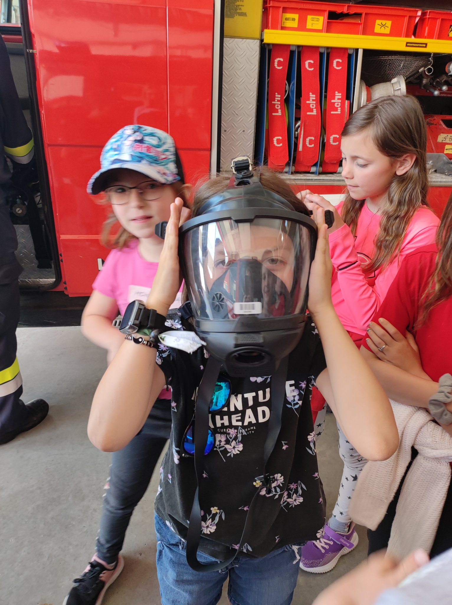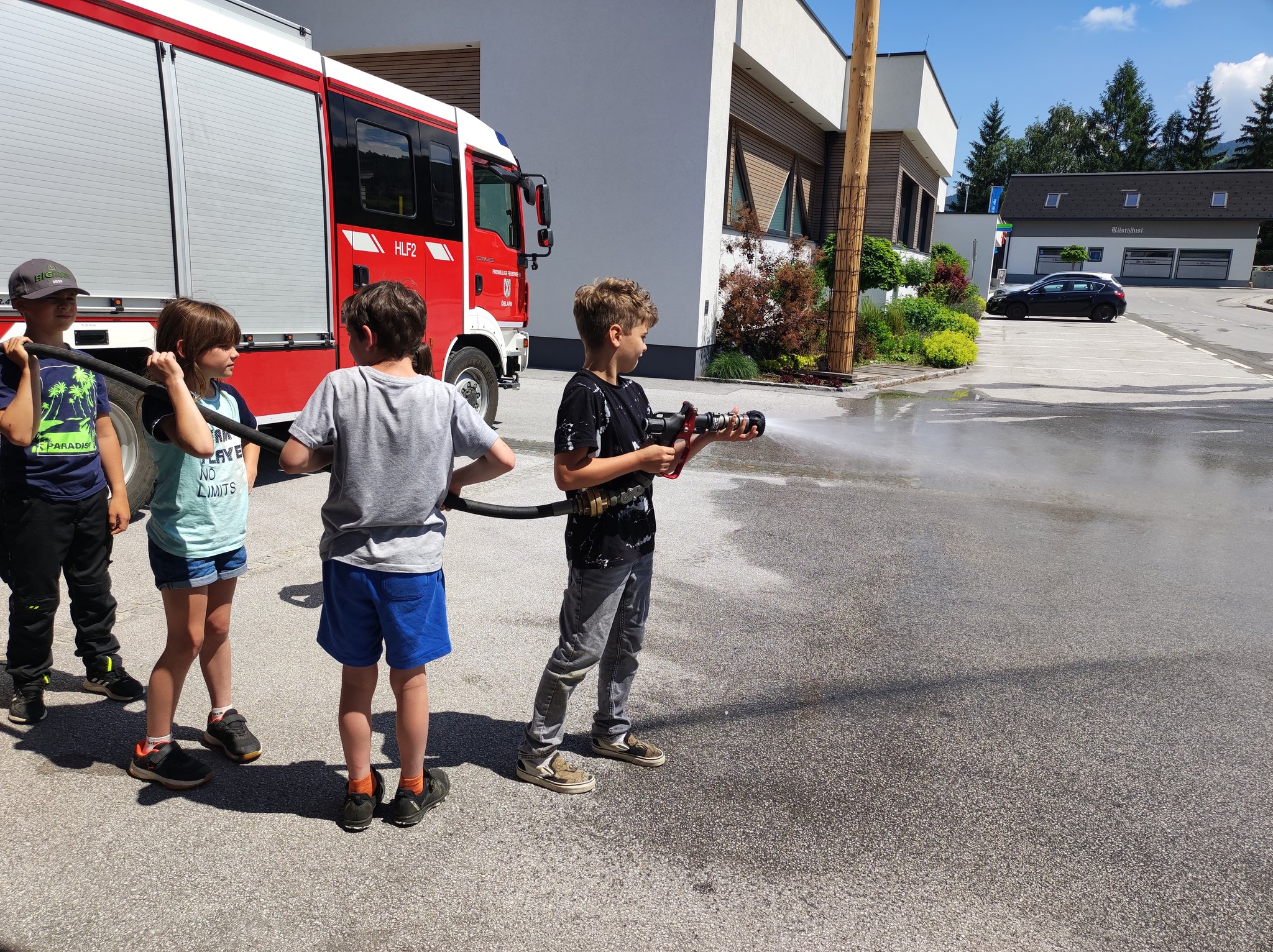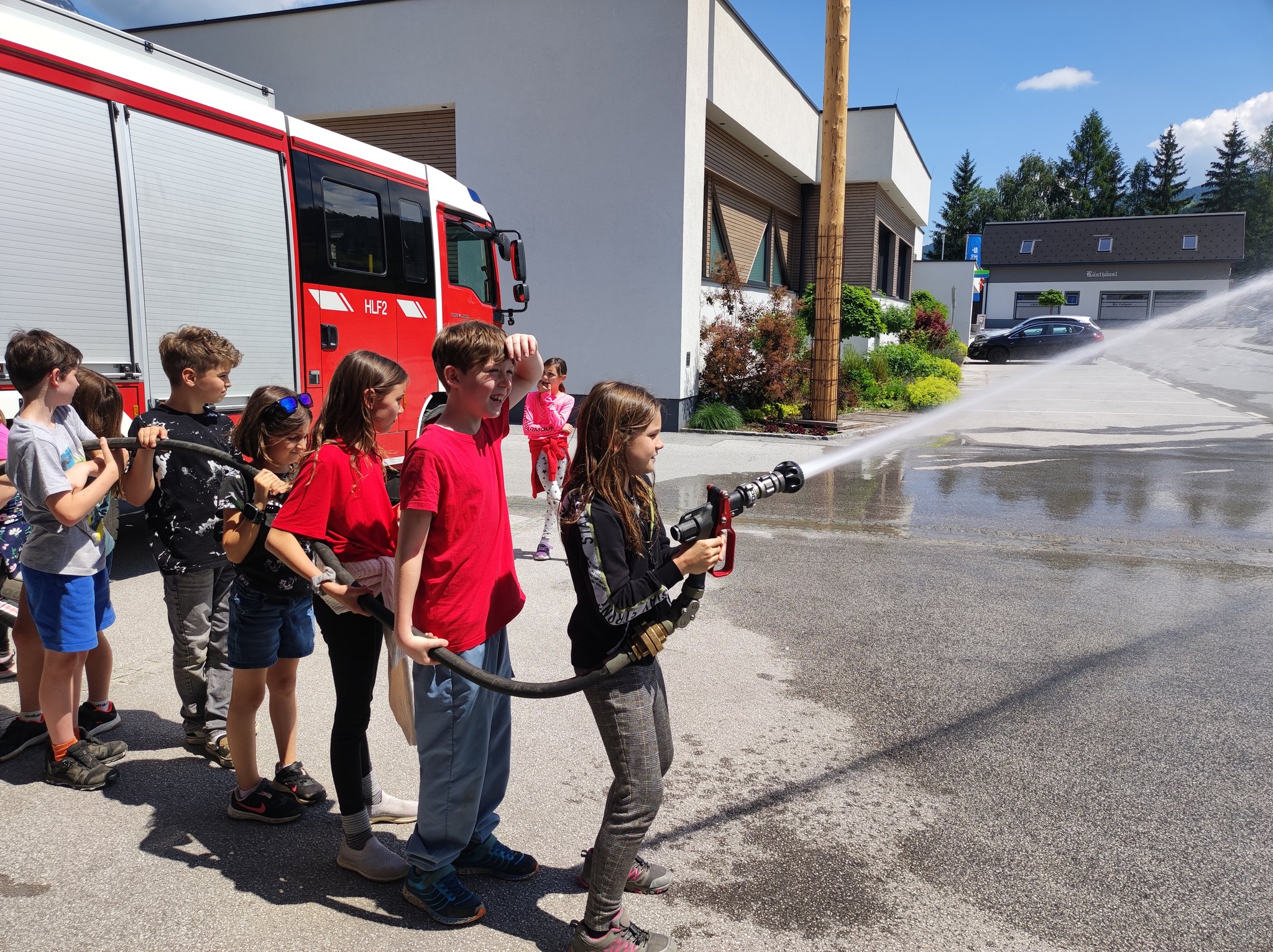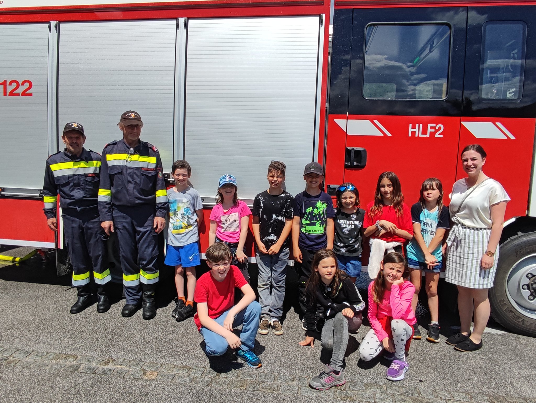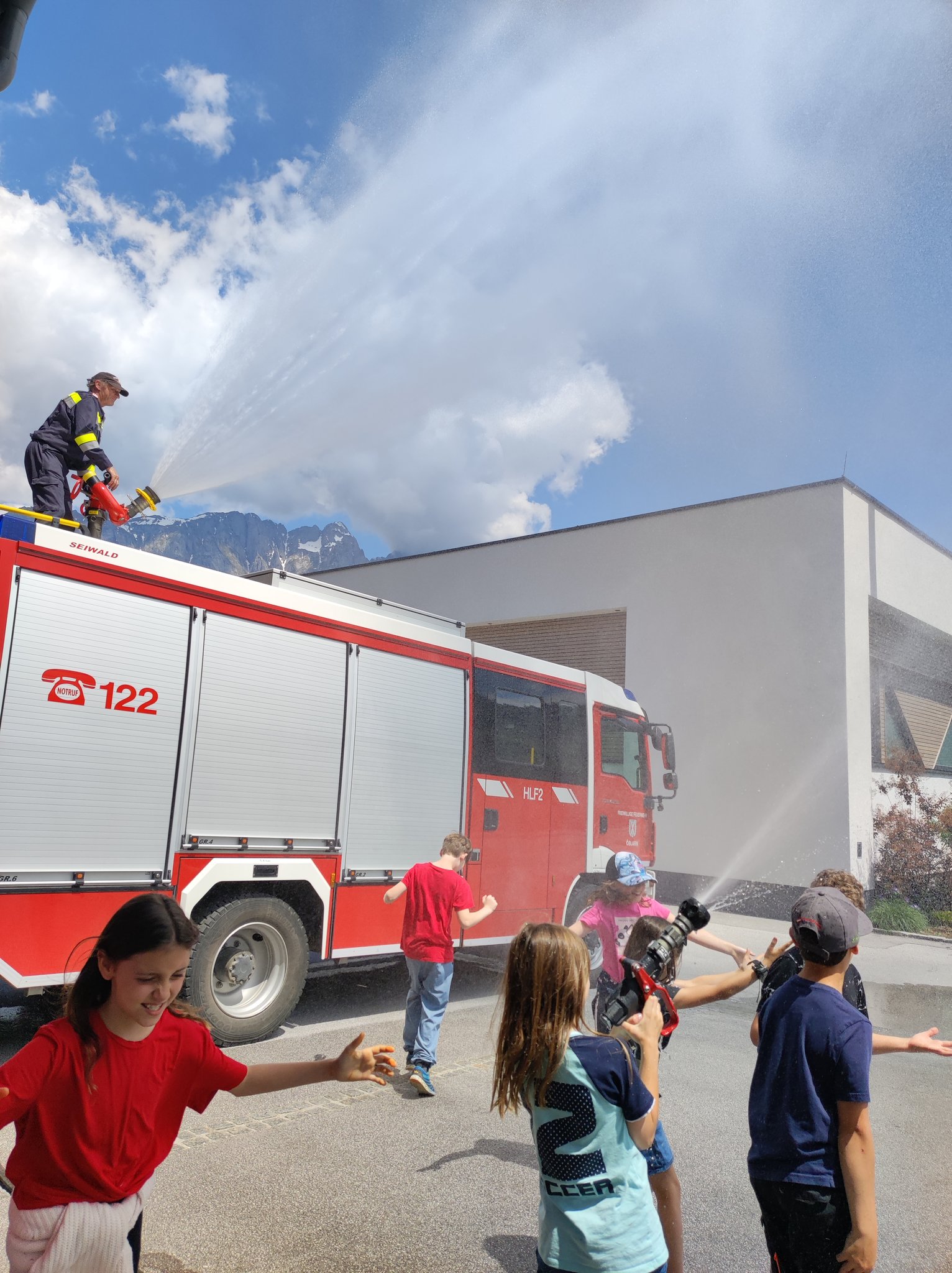 Am Montag, den 12.6., durften die SchülerInnen der 3. Klasse einen Blick in das Rüsthaus der Freiwilligen Feuerwehr Öblarn werfen. Herr Schrögnauer führte die Kinder gekonnt durch das Gebäude und erzählte viel Wissenswertes über die Aufgaben der Feuerwehr. Während die SchülerInnen einen genauen Einblick in das Innere der Einsatzfahrzeuge bekamen, konnten auch Atemschutzmasken, Gurte und das Tragen der Sauerstoffflaschen ausprobiert werden. Zum Schluss des interessanten Lehrausganges durften die Kinder auch noch mit dem Schlauch hantieren. Das machte natürlich sehr viel Spaß! Zu guter Letzt wurden die SchülerInnen auch noch mit dem Einsatzfahrzeug zur Schule gebracht. Herzlichen Dank dafür!