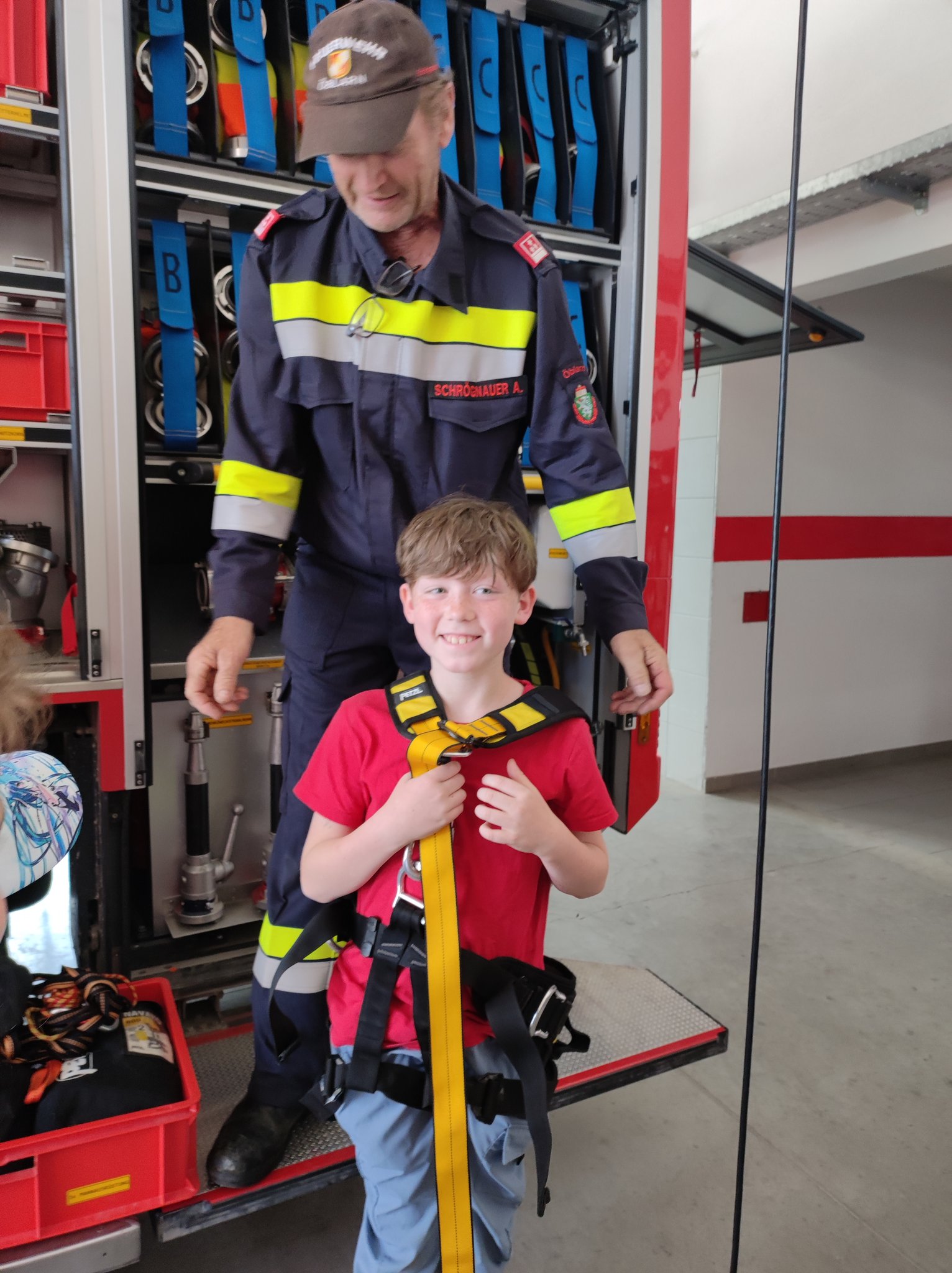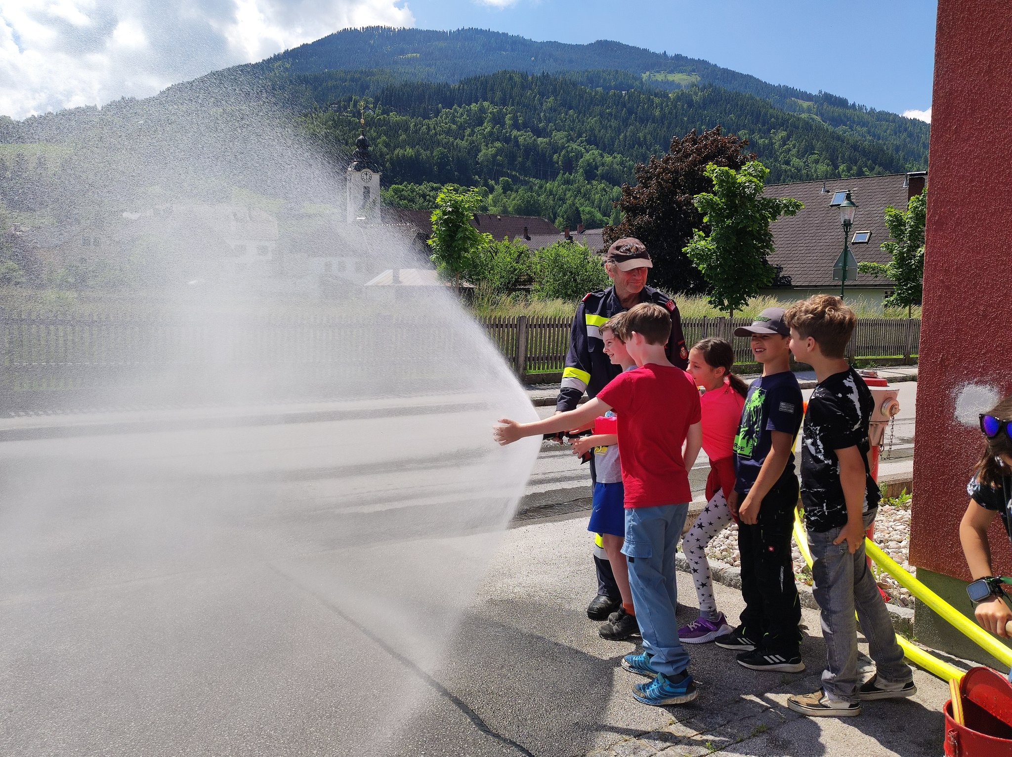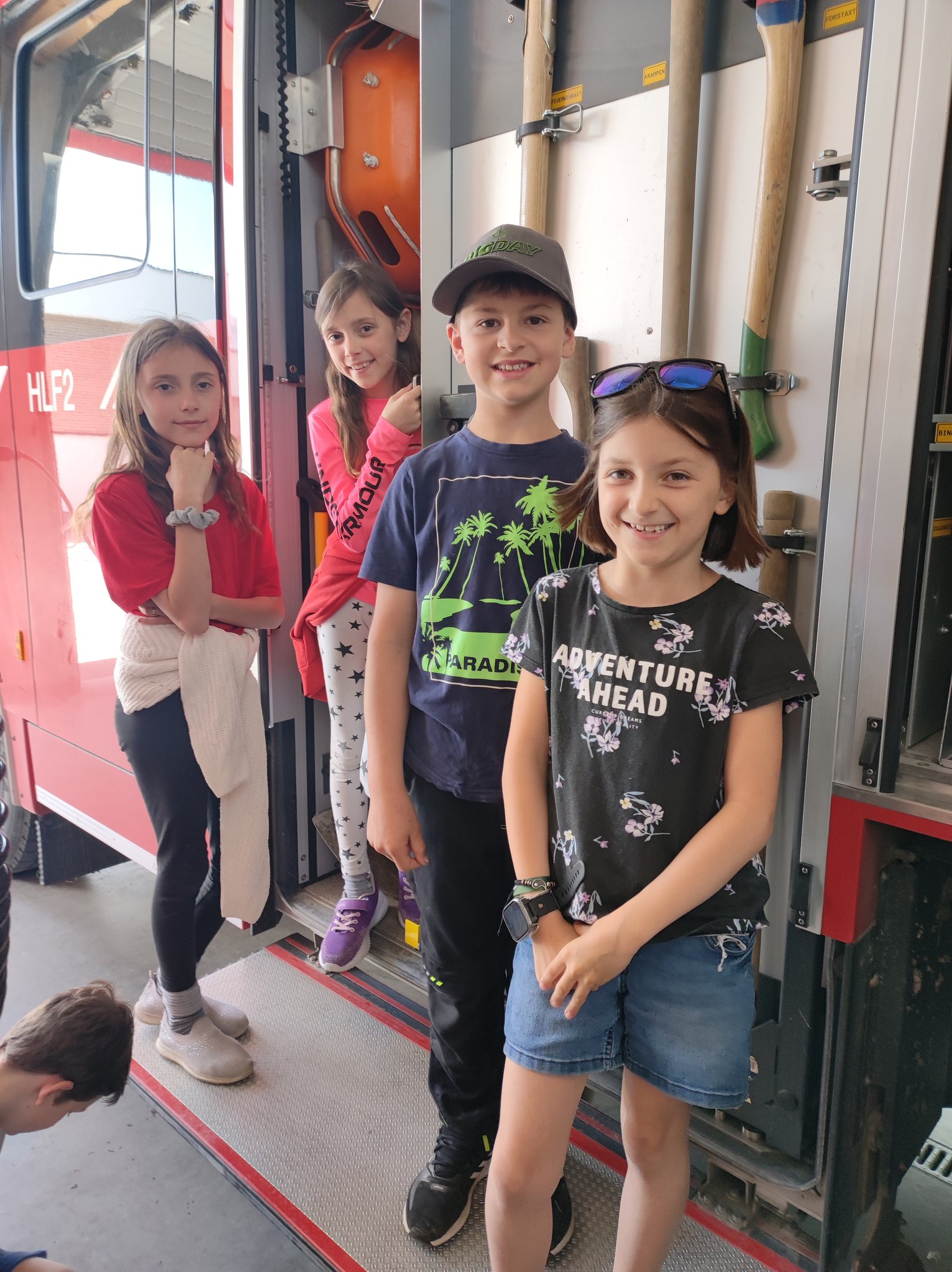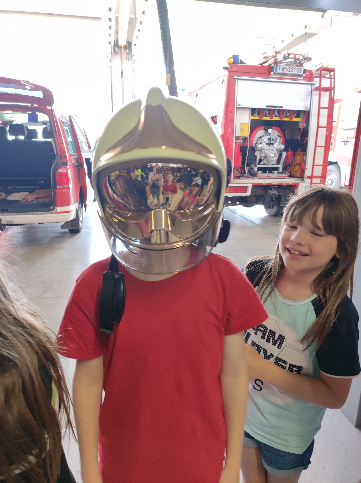 Am Montag, den 12.6., durften die SchülerInnen der 3. Klasse einen Blick in das Rüsthaus der Freiwilligen Feuerwehr Öblarn werfen. Herr Schrögnauer führte die Kinder gekonnt durch das Gebäude und erzählte viel Wissenswertes über die Aufgaben der Feuerwehr. Während die SchülerInnen einen genauen Einblick in das Innere der Einsatzfahrzeuge bekamen, konnten auch Atemschutzmasken, Gurte und das Tragen der Sauerstoffflaschen ausprobiert werden. Zum Schluss des interessanten Lehrausganges durften die Kinder auch noch mit dem Schlauch hantieren. Das machte natürlich sehr viel Spaß! Zu guter Letzt wurden die SchülerInnen auch noch mit dem Einsatzfahrzeug zur Schule gebracht. Herzlichen Dank dafür!