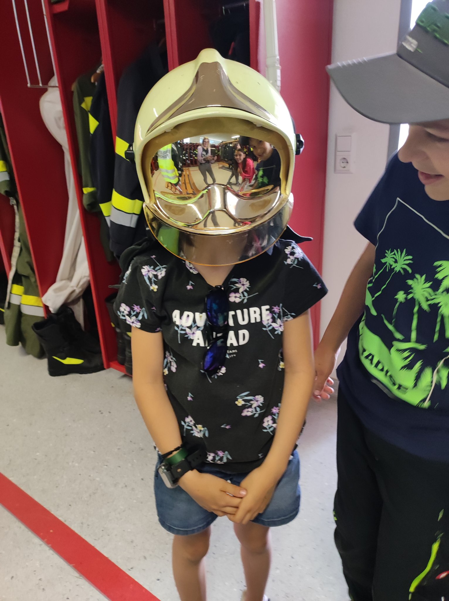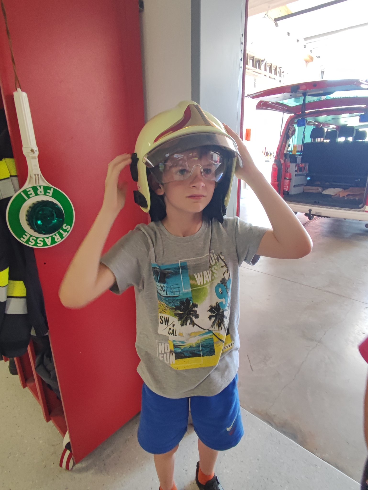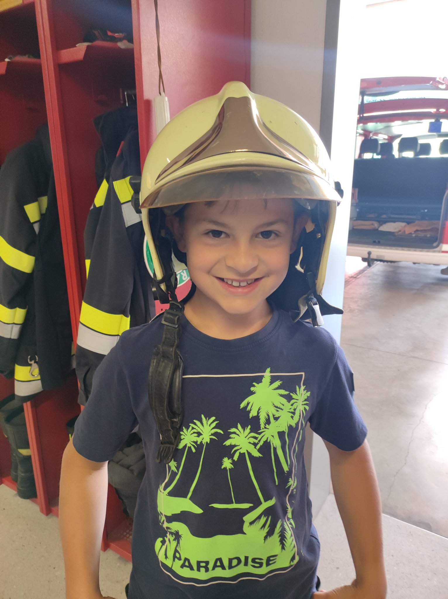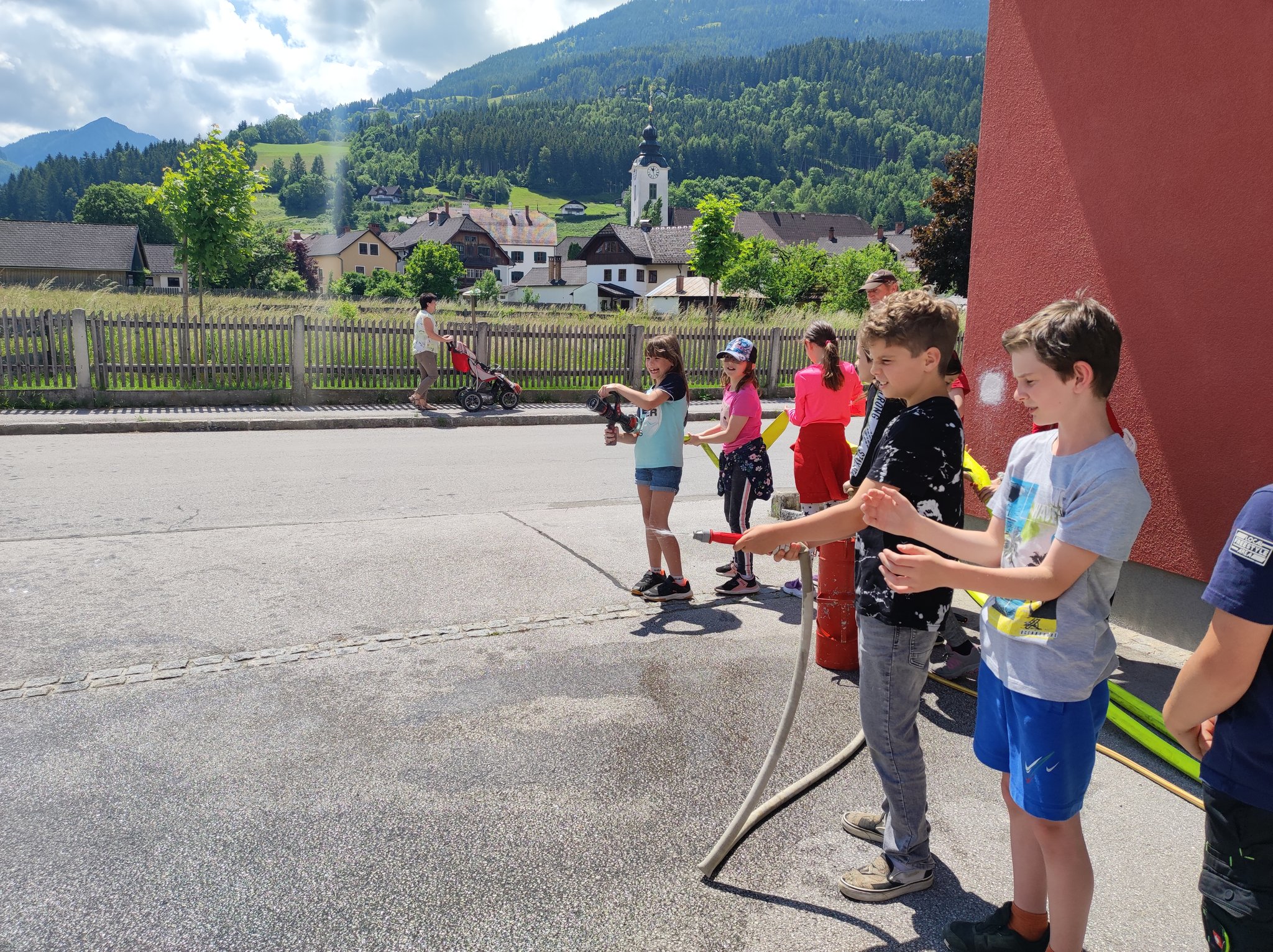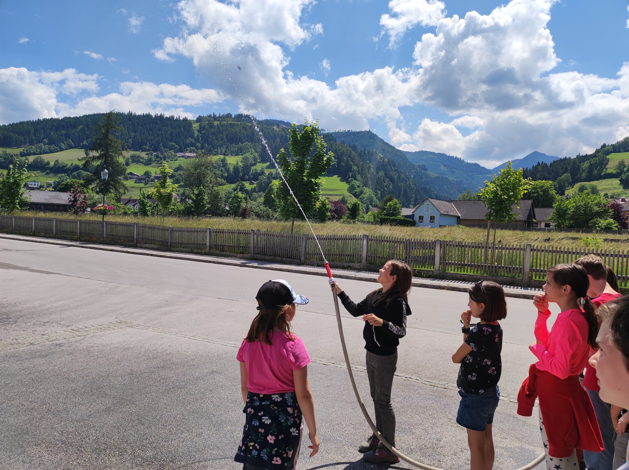 Am Montag, den 12.6., durften die SchülerInnen der 3. Klasse einen Blick in das Rüsthaus der Freiwilligen Feuerwehr Öblarn werfen. Herr Schrögnauer führte die Kinder gekonnt durch das Gebäude und erzählte viel Wissenswertes über die Aufgaben der Feuerwehr. Während die SchülerInnen einen genauen Einblick in das Innere der Einsatzfahrzeuge bekamen, konnten auch Atemschutzmasken, Gurte und das Tragen der Sauerstoffflaschen ausprobiert werden. Zum Schluss des interessanten Lehrausganges durften die Kinder auch noch mit dem Schlauch hantieren. Das machte natürlich sehr viel Spaß! Zu guter Letzt wurden die SchülerInnen auch noch mit dem Einsatzfahrzeug zur Schule gebracht. Herzlichen Dank dafür!