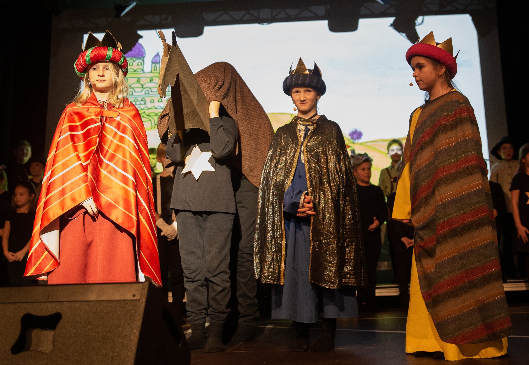 wurde mit Begeisterung an den Bühnenbildern gearbeitet. Die Aufführung fand nun am 21. Dezember um 18 Uhr im ÖHA in Öblarn statt. Für das leibliche Wohl sorgten die Eltern mit großem Engagement.