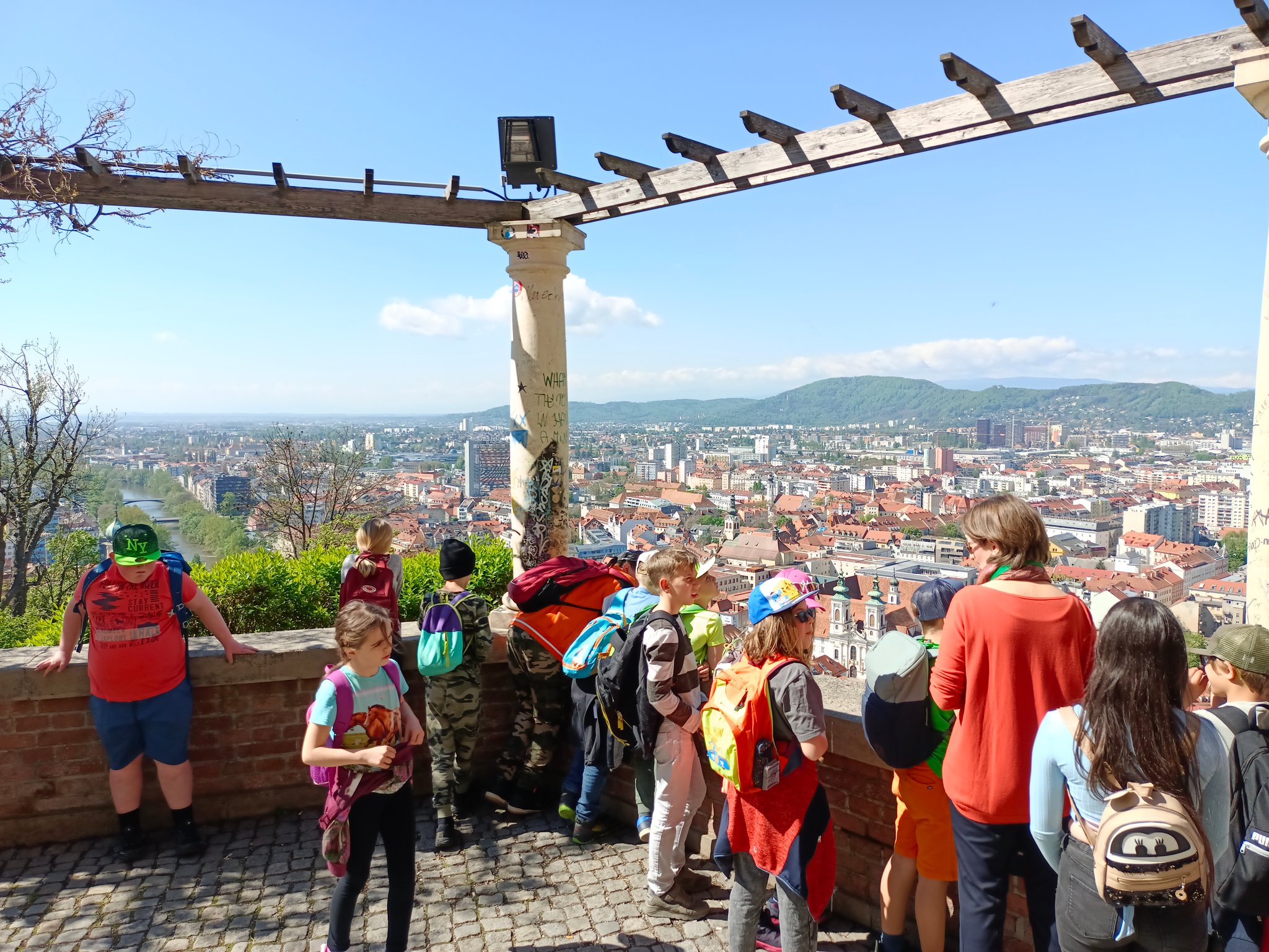 auf den Schlossberg. Wir durften in den Uhrturm und in den Glockenturm gehen und viele spannende Geschichten dazu erfahren. Auch der Türkenbrunnen stand am Programm. Nach dem Abstieg über die