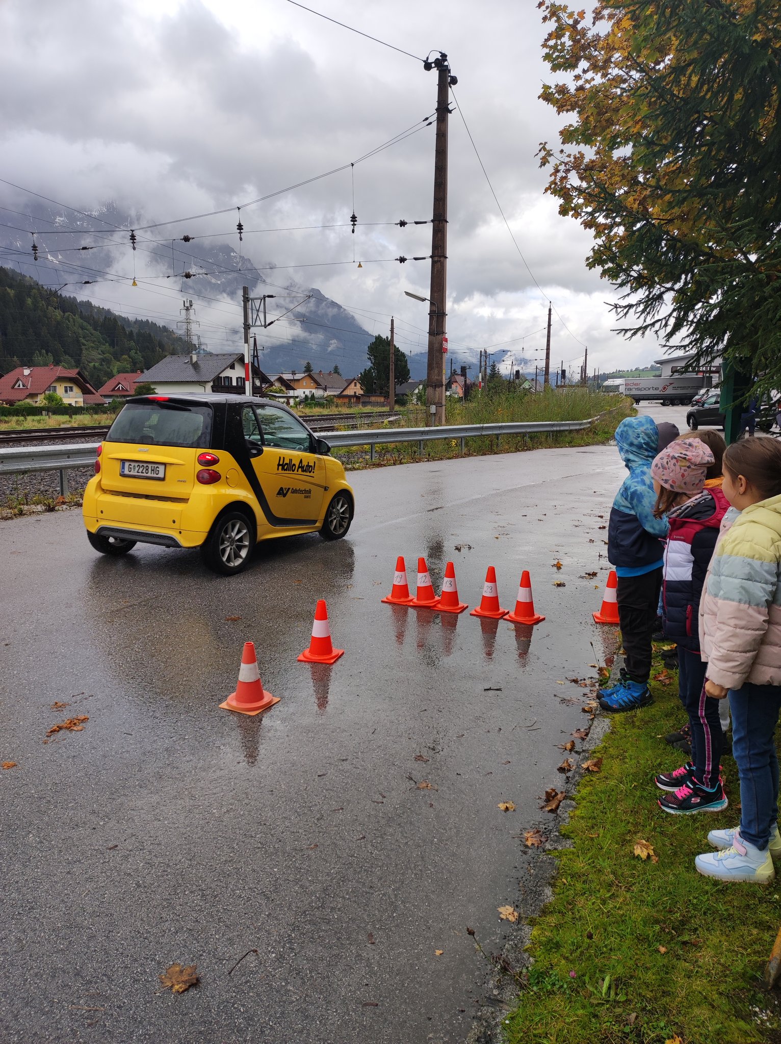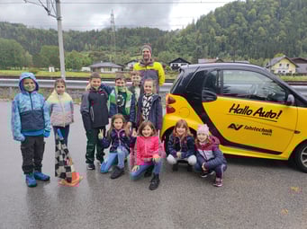 Die Schülerinnen und Schüler der 3. Klasse durften am 26. September an der ÖAMTC Aktion "Hallo Auto" teilnehmen. Dabei wird mit den Kindern die Formel "Reaktionsweg + Bremsweg = Anhalteweg" durch Selbsterfahrung erarbeitet. Die Schüler sehen und erkennen, dass selbst eine Notbremsung (die sie selbst durchführen dürfen (!)) das Auto nicht sofort zum Stehen bringt. Die Kinder waren begeistert!
