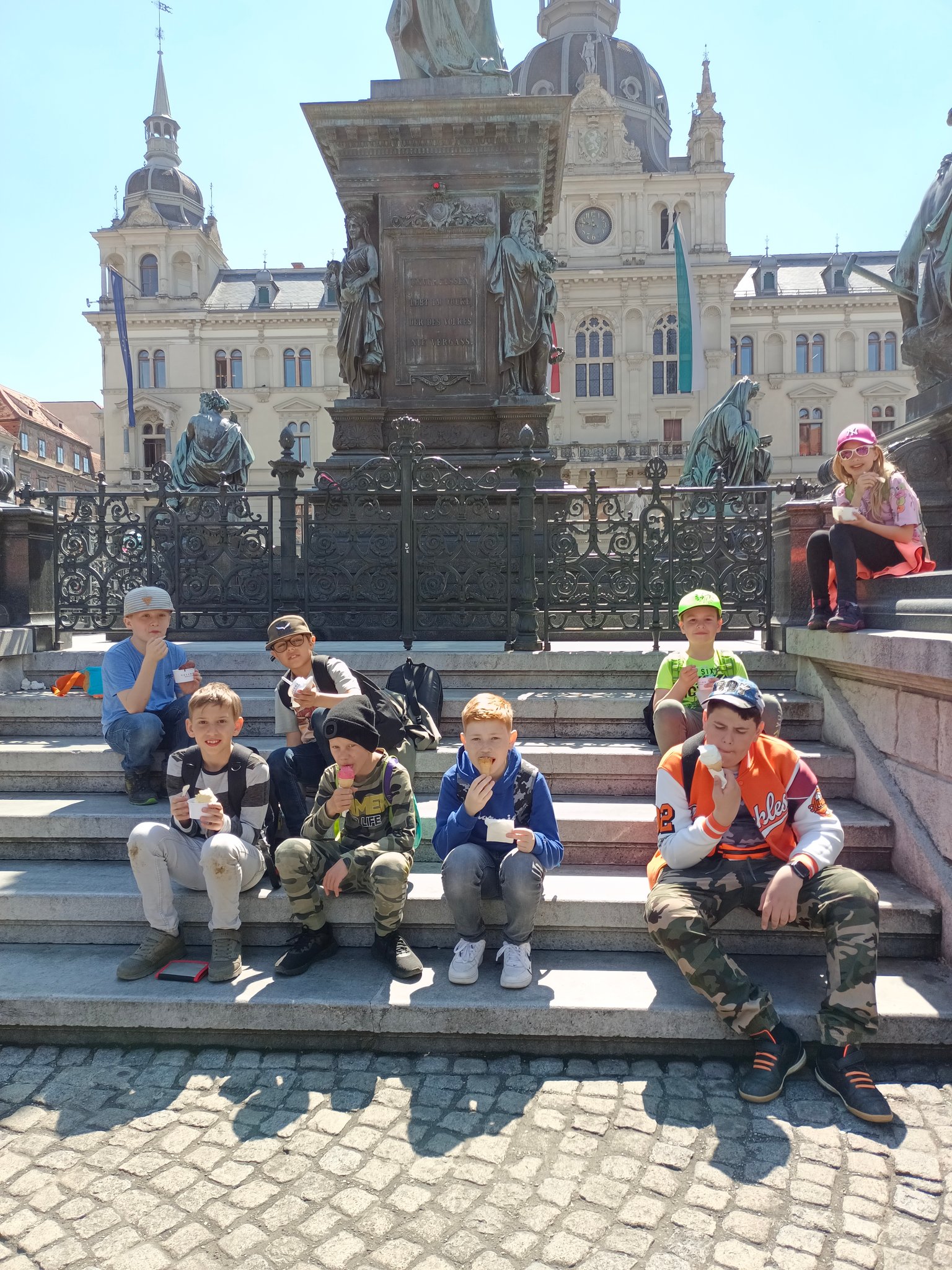 Eggenberg. Dort bestaunten die Kinder die tollen Prunkräume. Anschließend gab es noch ein "Eggtivity-Spiel". Zurück in der Innenstadt wurde eine Rätselrallye absolviert, bei der einige