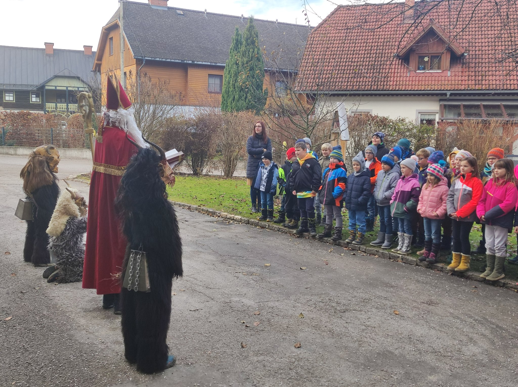 Am 5. Dezember bekamen die Schüler und Schülerinnen Besuch vom Nikolaus und seinen treuen Begleitern, den Krampussen. Nachdem die Kinder dem Nikolaus ein Lied vorsangen und auch einige Mädchen ein Gedicht aufsagen konnten, wurden alle SchülerInnen mit einem Schokolade-Nikolaus und einer Mandarine belohnt.